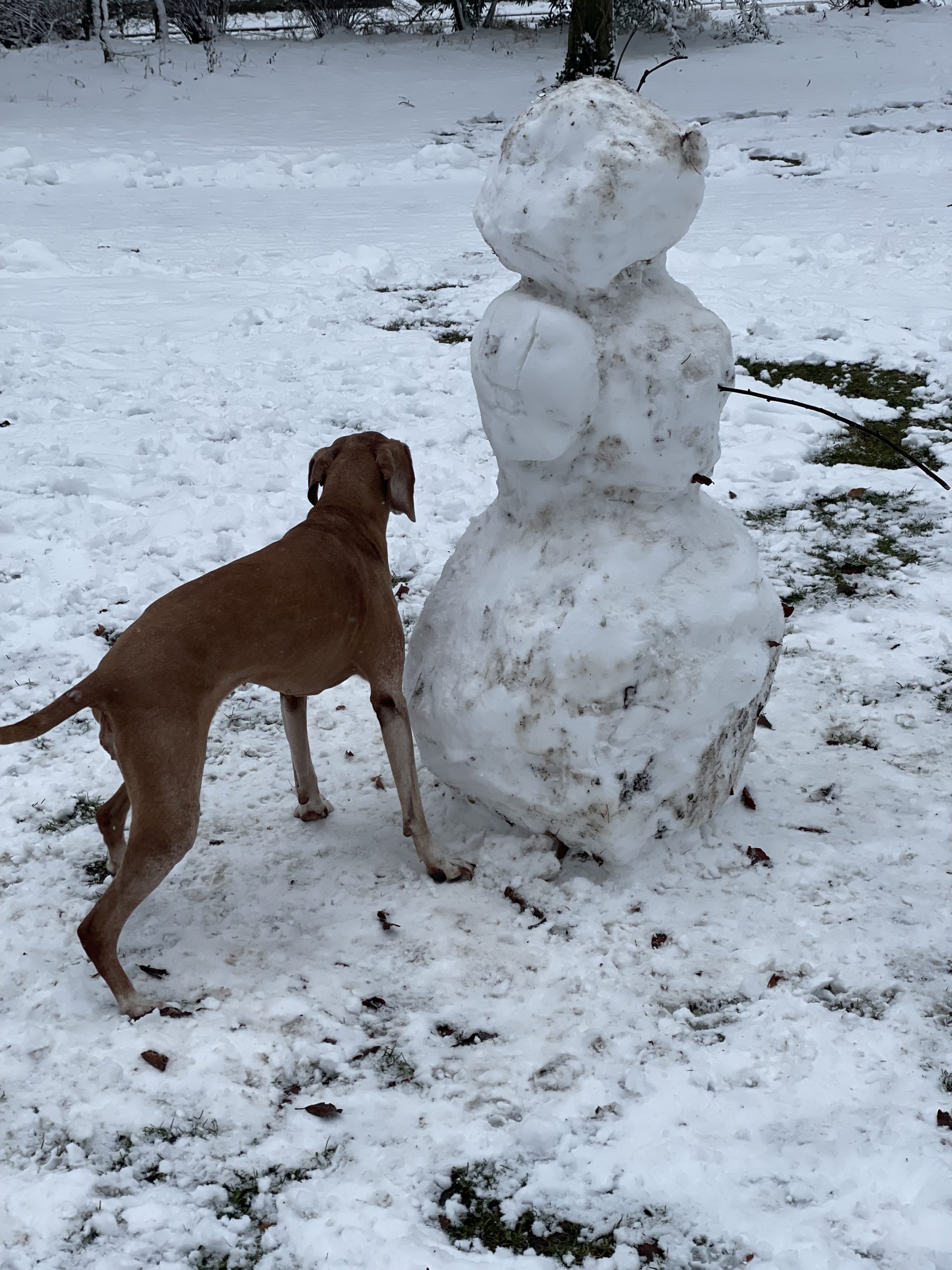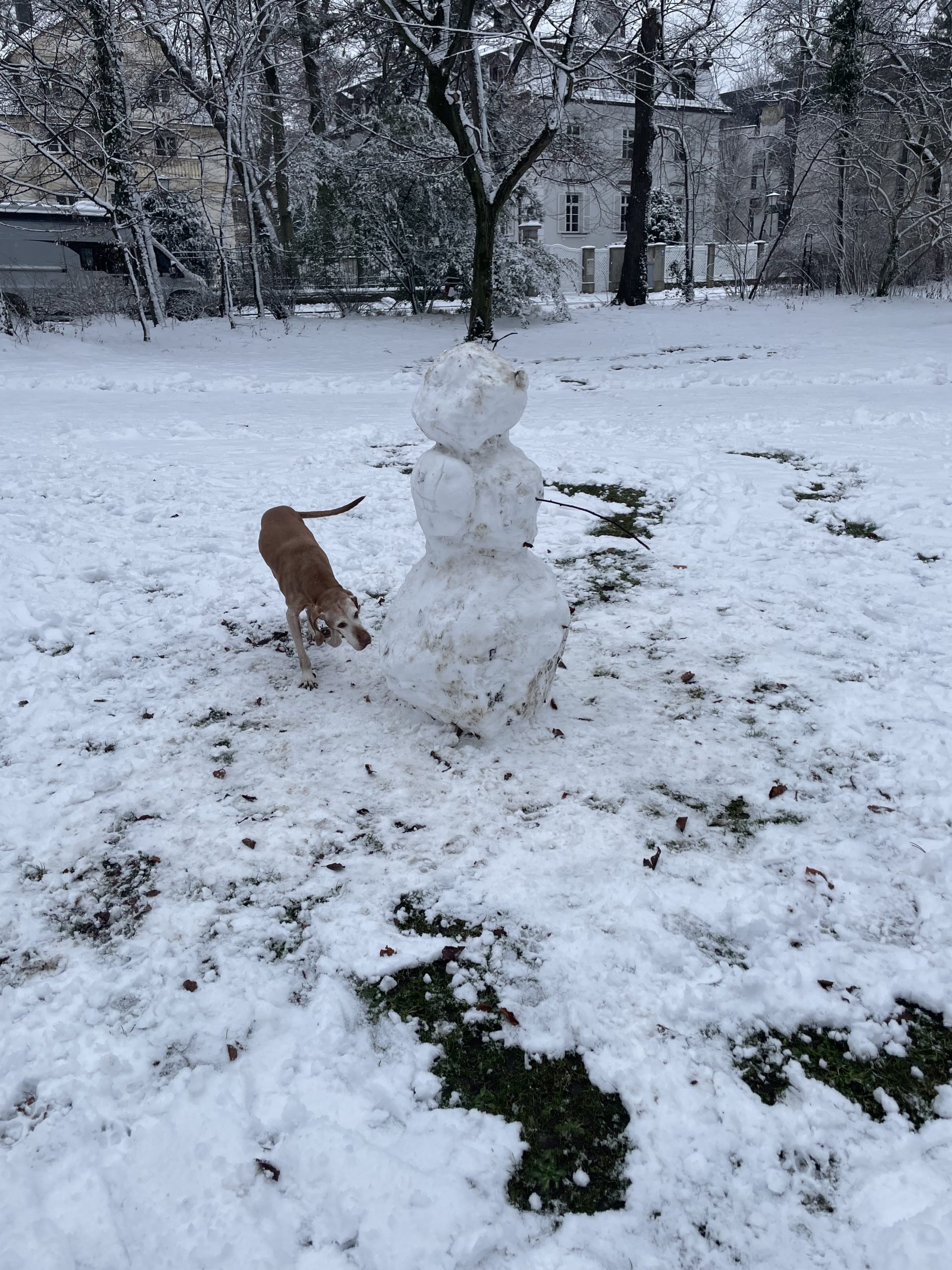 ... obwohl sie sich dann doch intensiver mit einem neu entstandenen Schneemann auf ihrer Lieblingswiese beschäftigt
