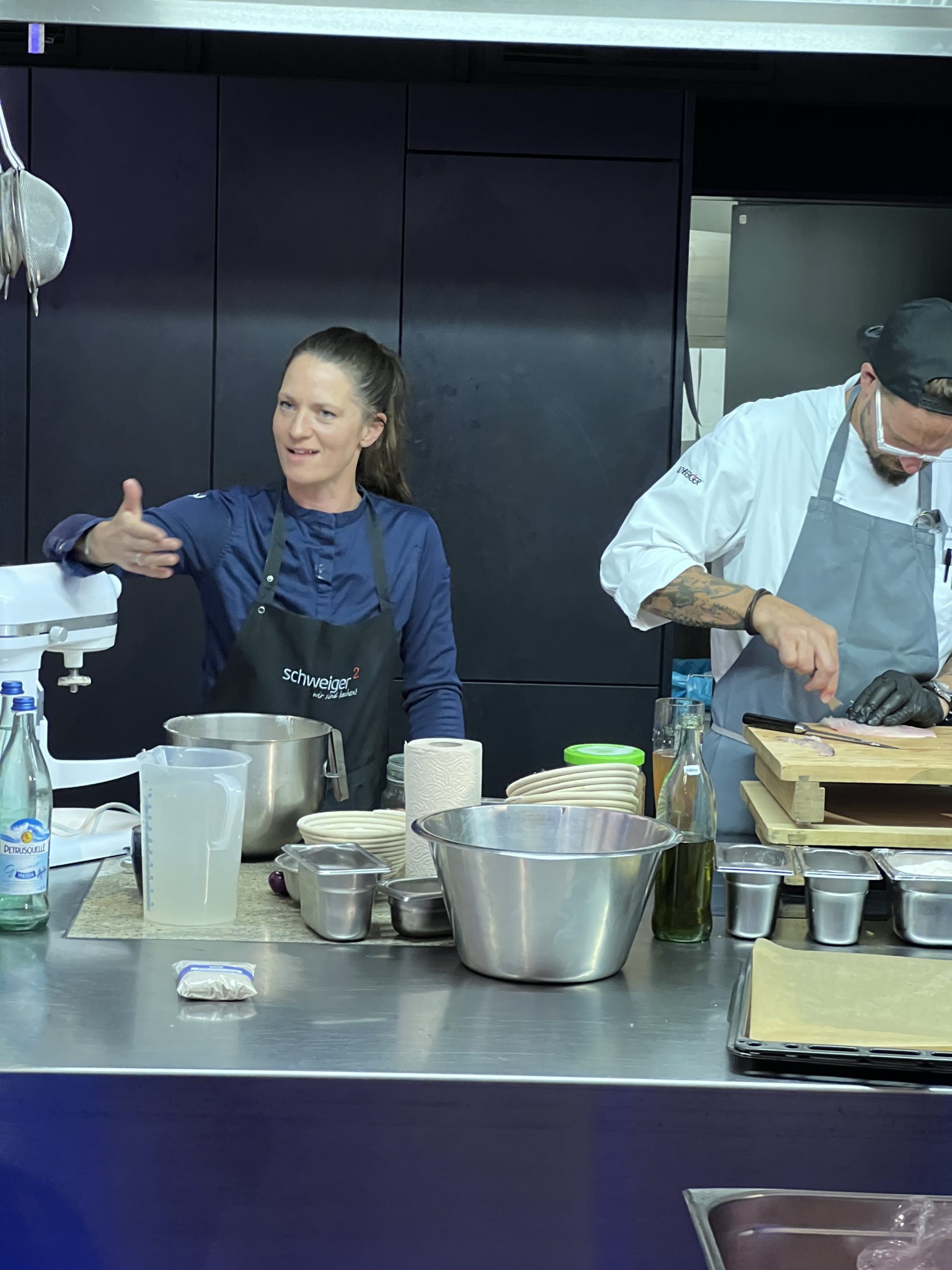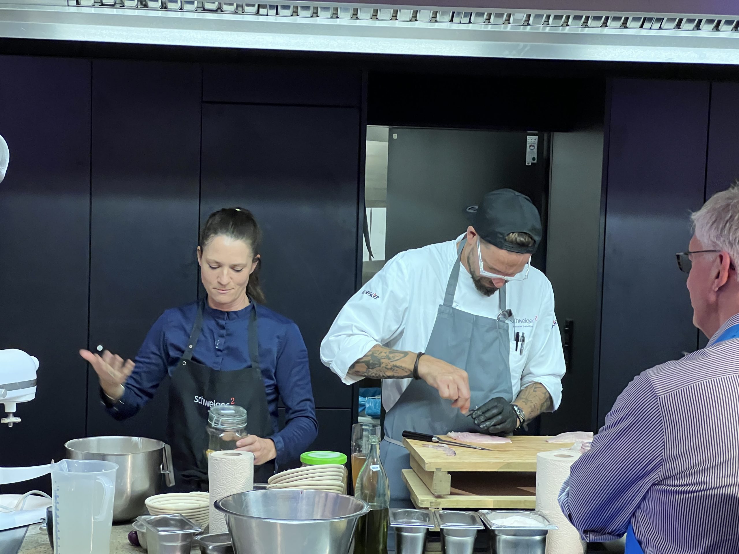 Vom Management des Interim Providers Atreus bin ich Ende Januar zu einem Kochevent für Geschäftspartner in Haidhausen eingeladen. Mit einer Gruppe von 20 Personen treffen wir uns dazu in der Kochschule von Andi und Franzi Schweiger treffen. Kochen ist eine Leidenschaft, denn Kochen ist kreativ, sinnlich und eine Kunst. Die Experten kochen mit Liebe eigene Fonds, reduzieren die perfekte Sauce, bis sie sämig und cremig ist und können stundenlang über Wochenmärkte schlendern. Sie lieben es, in asiatischen Supermärkten fremdartige und exotische Lebensmittel zu entdecken. In einem exclusiven Feinschmecker-Kochkurs perfektionieren wir diese Künste. Ein echter Profikoch, der in den Sterneküchen der Welt zuhause ist und Seite an Seite mit den Stars der Kochszene gebraten und flambiert hat, verrät uns seine Geheimnisse. Gemeinsam kochen wir ein Menü und werden vom Schüler selbst zum Meister. Der Kochexperte verrät die besten Tricks der Profis, gewährt amüsante Einblicke hinter die Kulissen der internationalen Edelküchen und lässt uns für ein paar Stunden das Flair einer großen Gourmetküche schnuppern. Gemeinsam kochen wir ein raffiniertes 4-Gänge-Menü für anspruchsvolle Genießer. Dabei zeigt der Chef, wie wir unsere Fähigkeiten an Messer, Pfanne und Schneebesen noch verfeinern können. Genießen Sie nach getaner Arbeit Ihr herrliches Sterne-Menü mit einem guten Glas Wein und lassen Sie das Event entspannt ausklingen. Der am 5. März 1976 in Karlsruhe geborene Andreas Schweiger ist ein deutscher Koch und Fernsehkoch. Einer breiten Öffentlichkeit wurde er vor allem als Protagonist der Doku-Soap Die Kochprofis – Einsatz am Herd auf RTL II bekannt. Schweiger begann 1993 mit 17 Jahren eine Kochlehre im Restaurant Fallert in Sasbachwalden im Schwarzwald. Sein Weg führte ihn nach der Lehre über Vincent Klinks Restaurant Wielandshöhe in Stuttgart, das Londoner Hotel Dorchester und das Hotel Krone in Herxheim schließlich nach München, wo er unter Holger Stromberg im Mandarin Oriental tätig war. Im Jahr 2003 wurde Schweiger im Restaurant Cocoon in München erstmals Küchenchef, 2005 im G-Munich, erneut unter Holger Stromberg. Im Jahr 2006 machte er sich mit dem Restaurant schweiger² in München selbstständig, das er mit seiner Frau Franziska („Franzi“) Schweiger, einer ausgebildeten Konditorin, leitete. Ende 2016 übergab er sein Restaurant an seinen Küchenchef Dominik Käppeler. Wie gelingt das perfekte Parfais? Wie bleibt Fisch glasig und saftig? Wie entsteht eine knusprige Kruste über dem rosigen Fleisch? Vor allem das Spiel mit der Konsistenz gehört zu den Herausforderungen der gehobenen Küche - in unserem Sterne-Kochkurs lernen Sie die Handgriffe der großen Küchenchefs. Die Königsdiziplin der Sterneküche ist jedoch das innovative Kombinieren klassischer Zutaten zu neuen Kreationen.