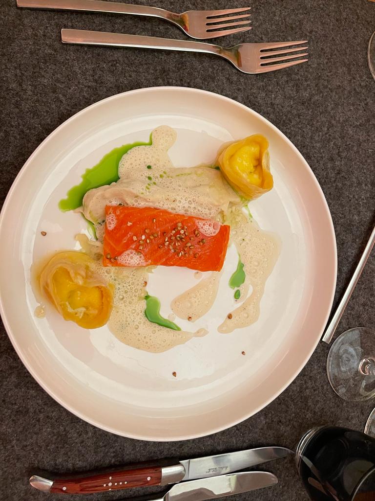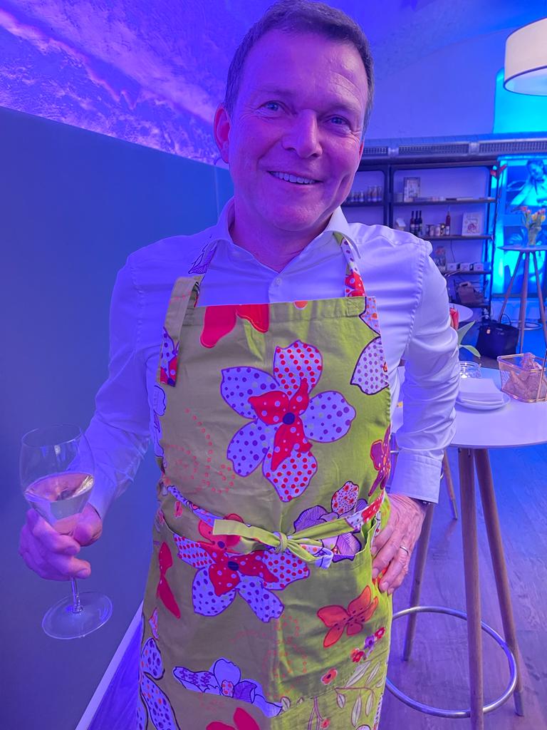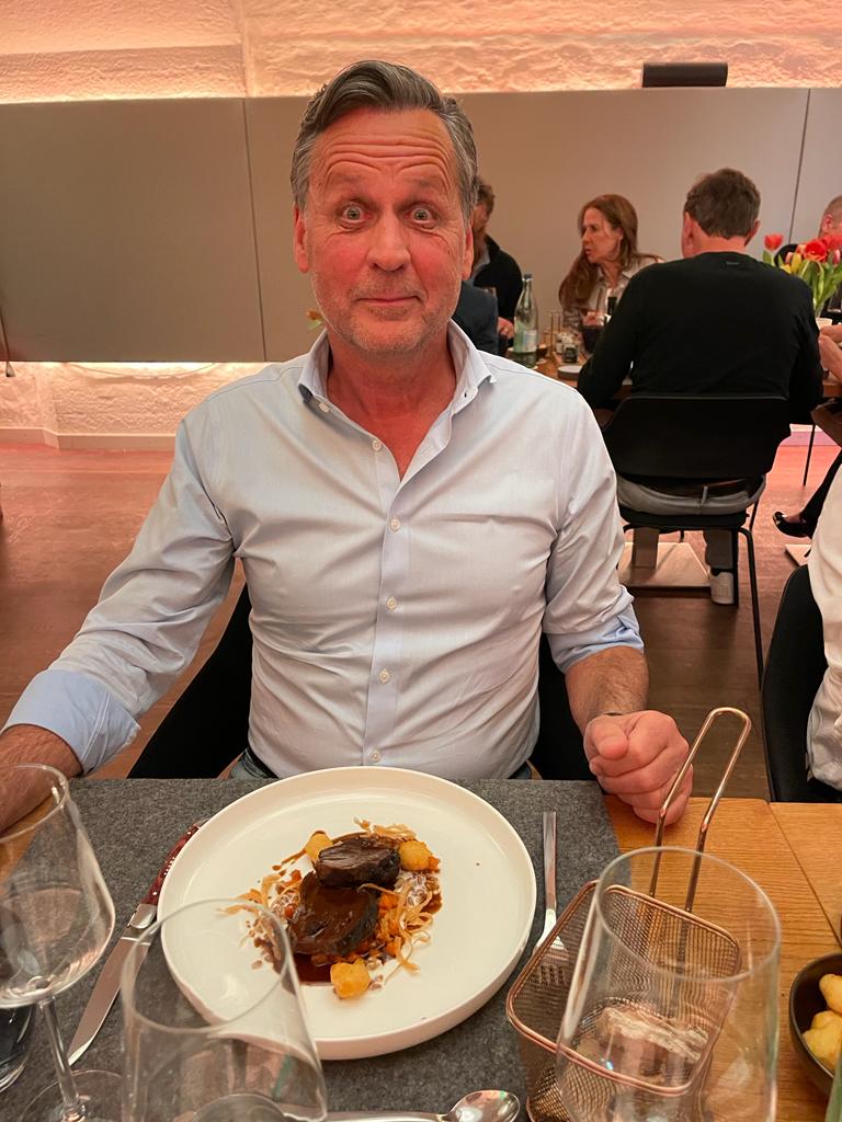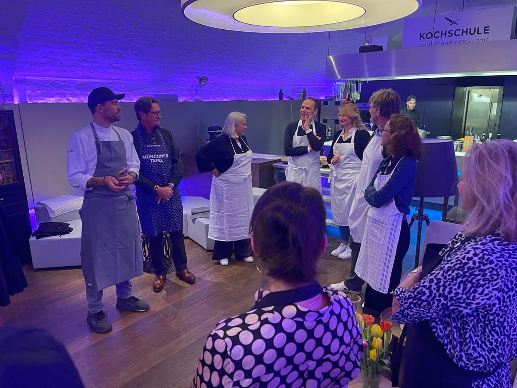 Unser Geschenk anläßlich der Feier des runden Geburtstags von Eva Conrad am 22. Oktober des letzten Jahres ist ein gemeinsamer Koch-Event mit einem begabten und unterhaltsamen Küchenchef gewesen. Es hat etwas mit der Umsetzung gedauert, doch gehen wir nun Ende März in München in medias res. In einer netten Gruppe von insgesamt 16 Personen treffen wir uns dazu in der Kochschule von Andi und Franzi Schweiger in Haidhausen. Der am 5. März 1976 in Karlsruhe geborene Andreas Schweiger ist ein deutscher Koch & Fernsehkoch. Einer breiten Öffentlichkeit wurde er vor allem als Protagonist der Doku-Soap "Die Kochprofis – Einsatz am Herd" auf RTL II bekannt. Schweiger begann 1993 mit 17 Jahren eine Kochlehre im Restaurant Fallert in Sasbachwalden im Schwarzwald. Sein Weg führte ihn nach der Lehre über Vincent Klinks Restaurant Wielandshöhe in Stuttgart, das Londoner Hotel Dorchester und das Hotel Krone in Herxheim schließlich nach München, wo er unter Holger Stromberg im Mandarin Oriental tätig war. Im Jahr 2003 wurde Schweiger im Restaurant Cocoon in München erstmals Küchenchef, 2005 im G-Munich, erneut unter Holger Stromberg. Im Jahr 2006 machte er sich mit dem Restaurant schweiger² in München selbstständig, das er mit seiner Frau Franziska („Franzi“) Schweiger, einer ausgebildeten Konditorin, leitete. Ende 2016 übergab er sein Restaurant an seinen Küchenchef Dominik Käppeler und die beiden starteten mit ihrer Kochschule im Untergeschoss des Hofbräukellers. Leider fiel eine Geschäftsreise von Annette nach Hamburg und mein eigener Klinik Aufenthalt in Gauting auf den selben Tag, daß wir hier nur remote berichten können. Jürgen Groth übernahm die Organisation vor Ort und eine durchaus homogene Truppe hat sich auf Basis der verschiedenen Berichte recht ordentlich geschlagen und war mit Spaß bei der Koch-Arbeit und dem anschließenden gemeinsamen Verzehr der hergestellten Produkte dabei.