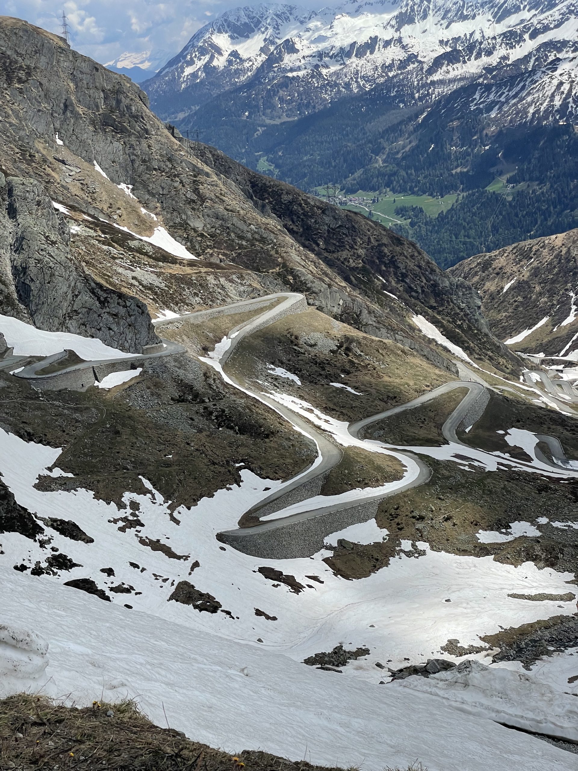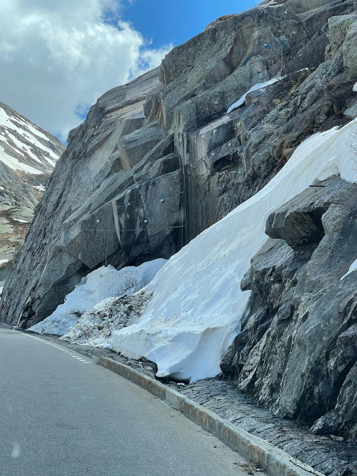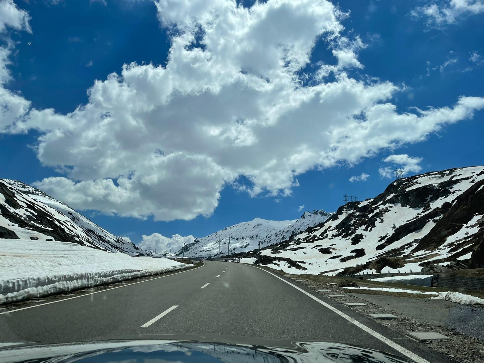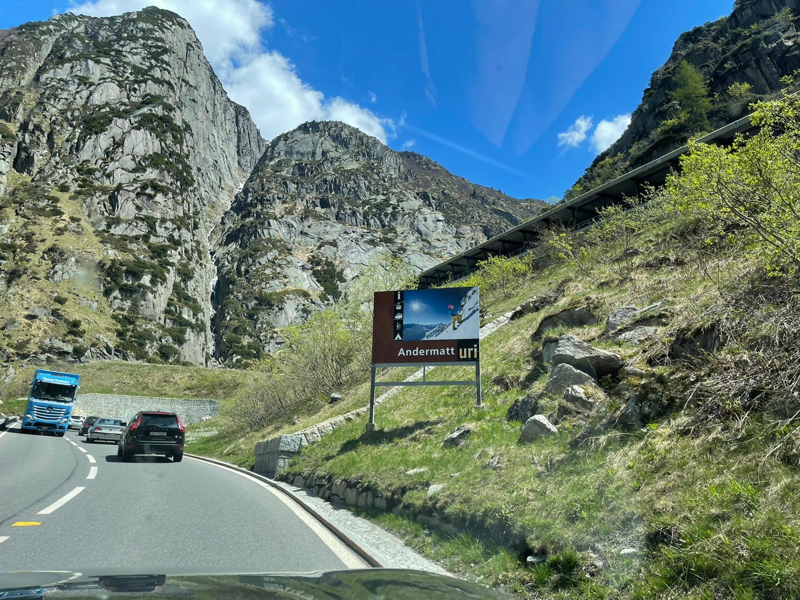 Bei schönem Wetter und klarer Sicht ist es ein einmaliges Erlebnis mit dem Auto oder Motorrad über den Gotthard zu fahren. An der Alpennordseite waren die Hänge noch verschneit