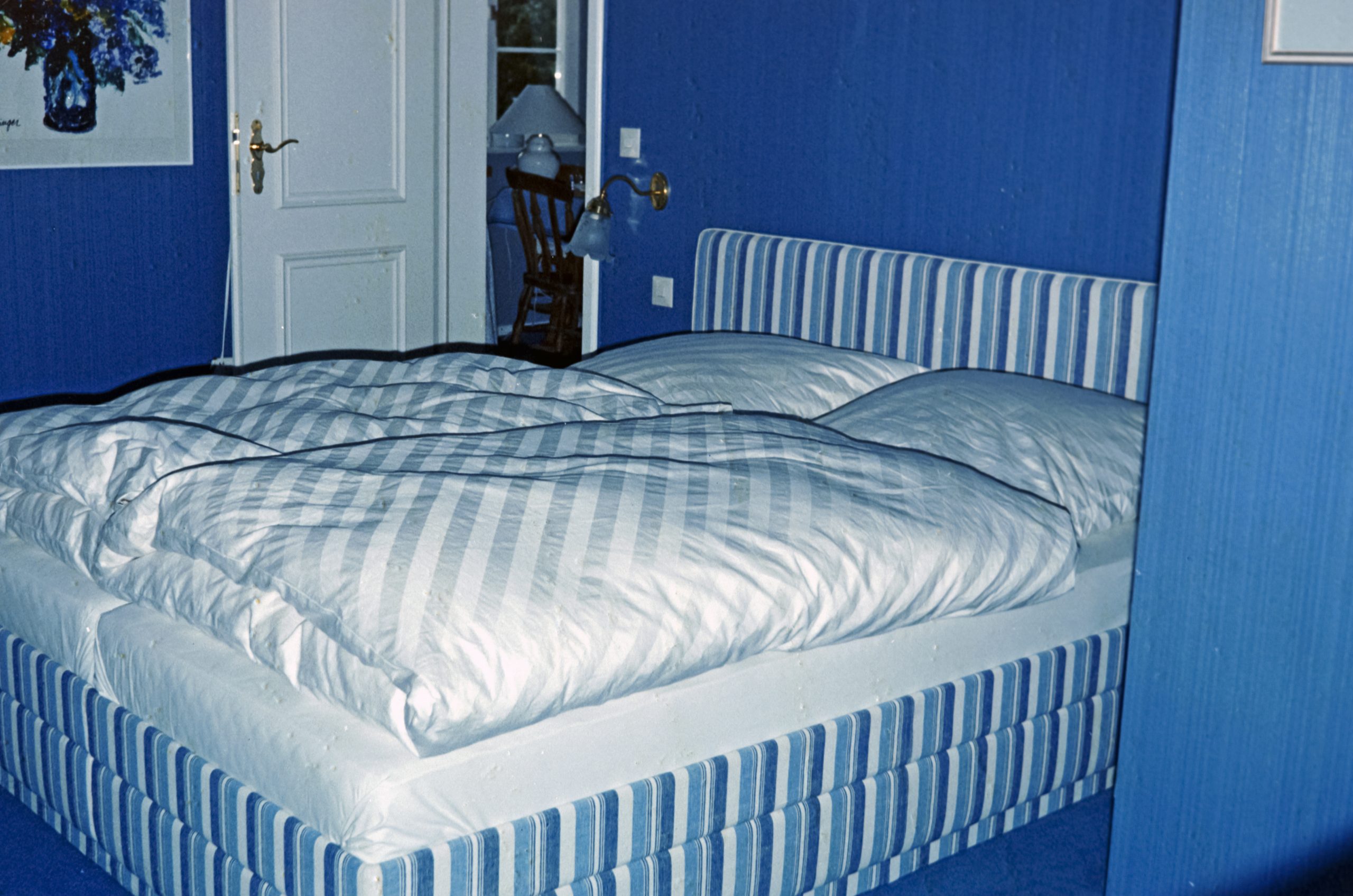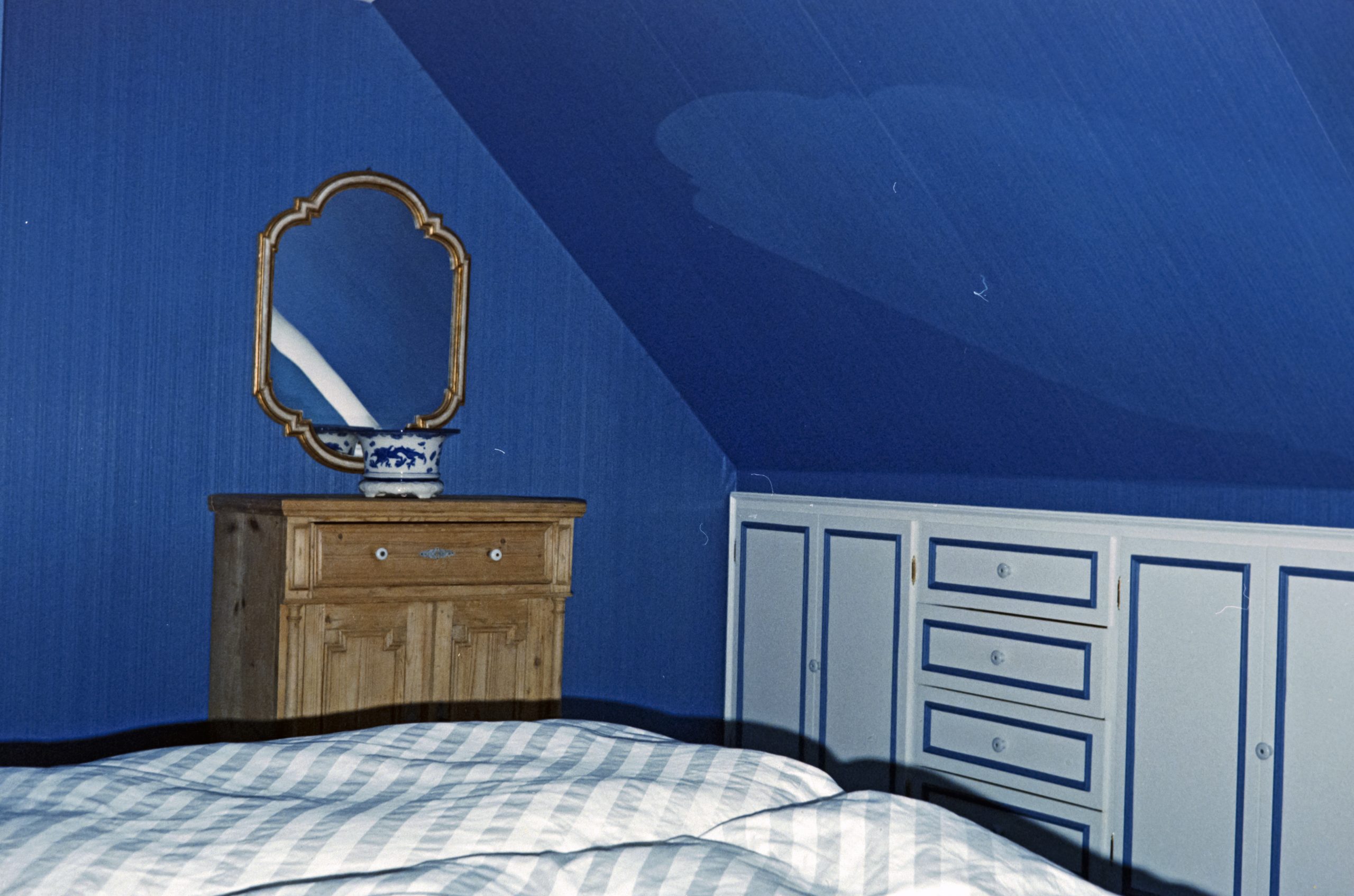 Die durchgängige Farbwahl in Blau liess keine Ausreisser zu ... Teppiche, Tapeten, Bezüge, Betten, Bilder und Blumenvasen