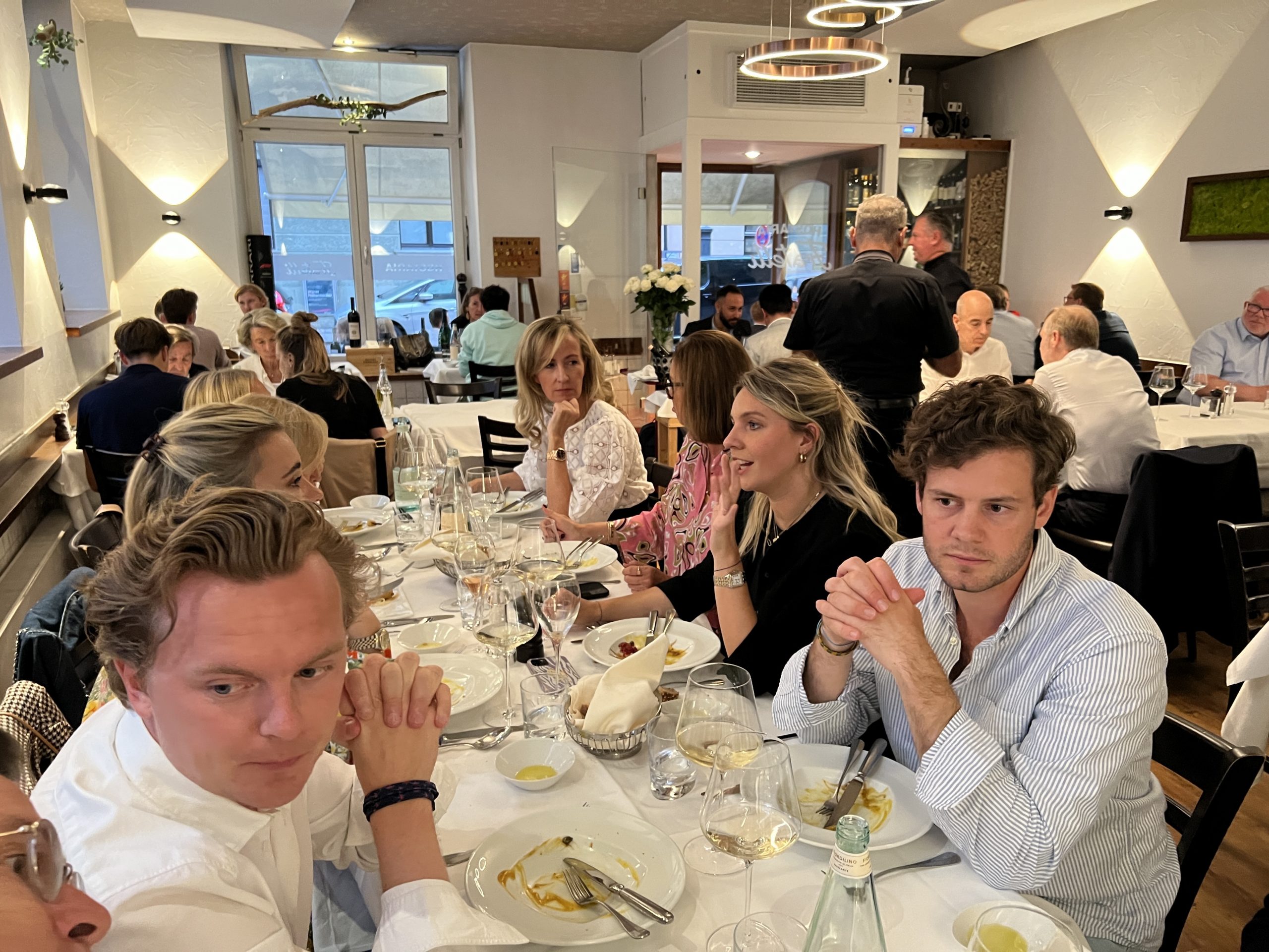 Wie immer feiert Uschi ihren Geburtstag genau eine Woche vor ihrem Gatten Karl, der am 10. August in die in unserem Freundeskreis zulegende Fraktion der 70er rundet. So kommen die beiden aus dem Tiroler Reith nach München und laden im schönsten Haidhausen ihre beiden Kinder Manina und Nici mit ihren Partnern Sebastian und Paulina, Lisa und Christoph, Diana und Jan Philip Wieners sowie Annette und mich zu einem schönen Geburtstagsessen ein. Allein diese nette Mischung aus lieben Menschen machte den Erfolg unseres unterhaltsamen und amüsanten Abends aus. Die zweite entscheidene Komponente war die Auswahl unserer Location: Die Hostaria Fratelli kommt wie ein Ferrari unter Münchens Italienern daher. So muss ein gutes Restaurant aussehen. Schlichte weiße Tischdecken mit weißen Stoffservietten, je ein Messer und eine Gabel daneben. Einfache Stühle, vereinzelt Kerzen, indirekte Beleuchtung und beeindruckende Lampen über der Mitte des Raumes. Kein Chichi mit einem Dutzend Besteckteilen und Gläserbatterien auf dem Tisch, keine geschwätzigen Kellner, die den Gast schleimerisch umgarnen. In diesem Ambiente, und im Sommer gerne auch vor der Tür auf der Steinstraße am Wiener Platz, agiert Rocco Gruosso, der Padrone höchstselbst. Er spricht mit dieser wohltuenden süditalienischen Färbung, die bei Italien affinen Deutschen sofort südliches Fernweh erzeugt. Aber im Ernst: Rocco umsorgt zusammen mit seinem Kompagnon jeden Gast auf vorzügliche Weise, handfest und zuverlässig, ansprechend mit weinroter Schürze gekleidet. Ein Schuss vom edlen Olivenöl im Schälchen, frisches Weißbrot und ein kleiner Gruß aus der Küche bilden den Auftakt. Nun kann nichts mehr schiefgehen und wir geniessen einen köstlichen Abend mit einem ausgezeichneten Menü sowie hervorragenden Weinen, daß Karl und Uschi bereits zuvor Probe gegessen haben. Die Themen bei der Herrenfraktion: Politik, AfD, schnelle Autos und die bevorstehende Dolomiten Porsche Tour der Pohler Family sowie die Entwicklung der eMobility. Die Damen unterhielten sich laut Ette über alles Mögliche: Schmuck, Schuhe, Jeansjacken und Gesundheit waren auf jeden Fall dabei ...