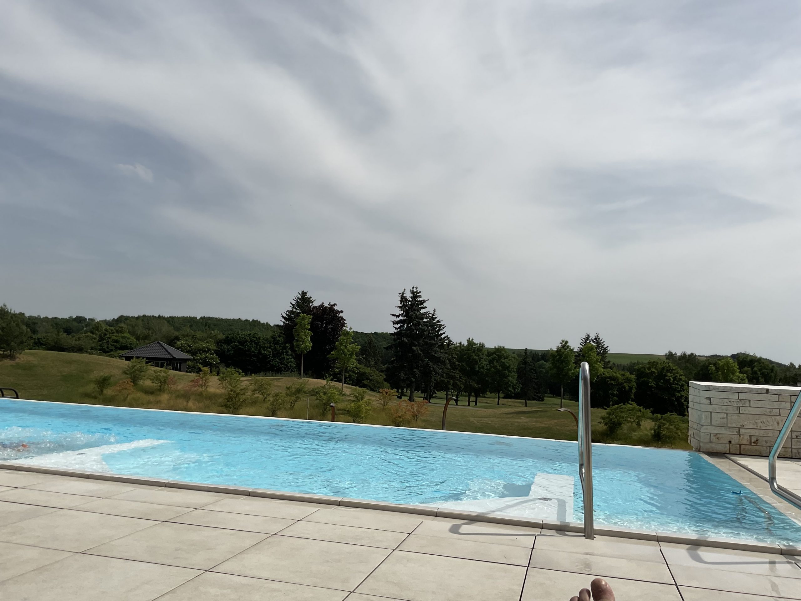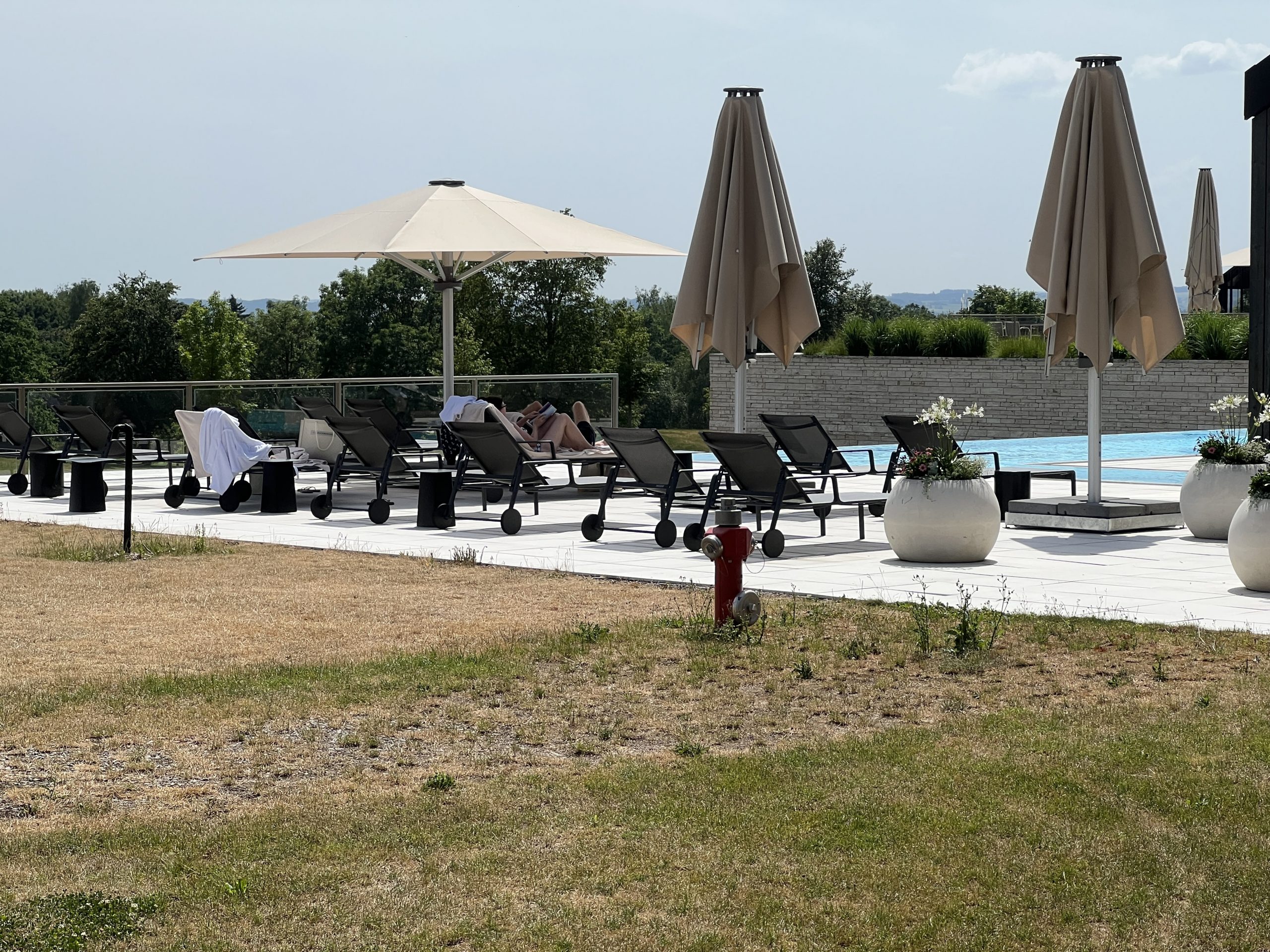 Rund um die Pools sieht man am Rasen, daß hier Regen fehlt ...