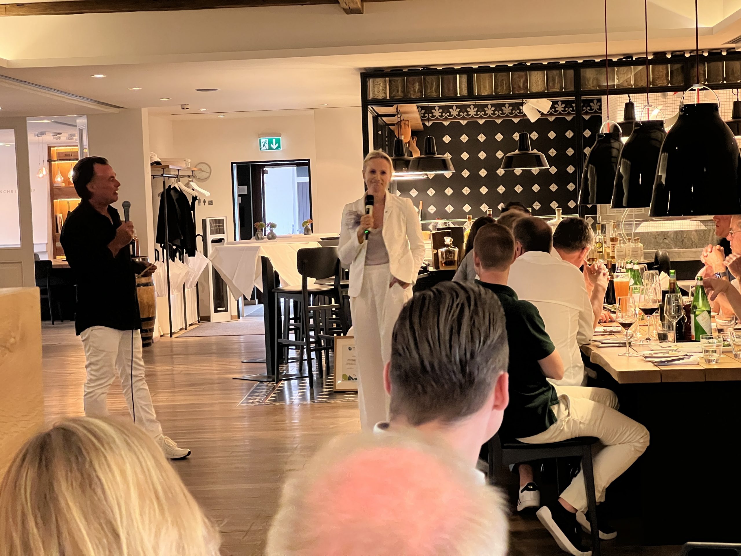 Didi Axt und Christoph Rosa lauschen den Ausführungen der neuen Hotel Chefin, nachdem Alexander Aisenbrey das Haus vor kurzem verlassen hat