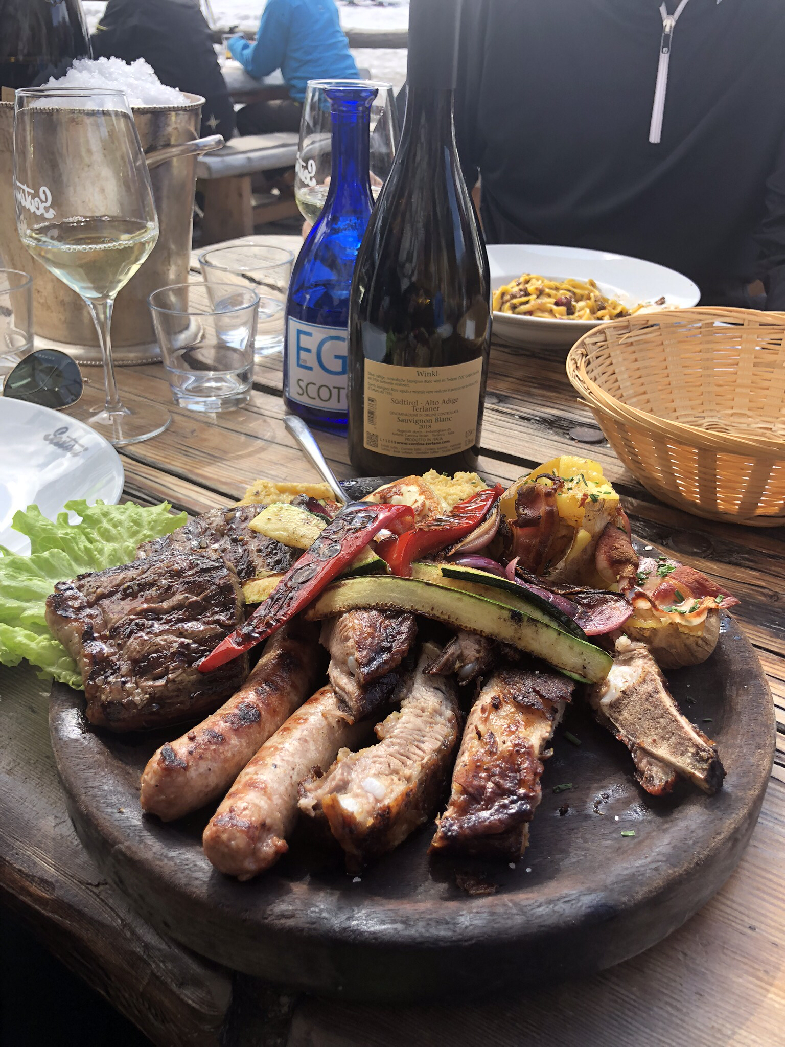 Die Scotoni Hütte an der Lagazoi Abfahrt ist seit vielen Jahren unser Lieblings Refugio und die Speise- und Weinkarte erfüllt all unsere Wünsche
