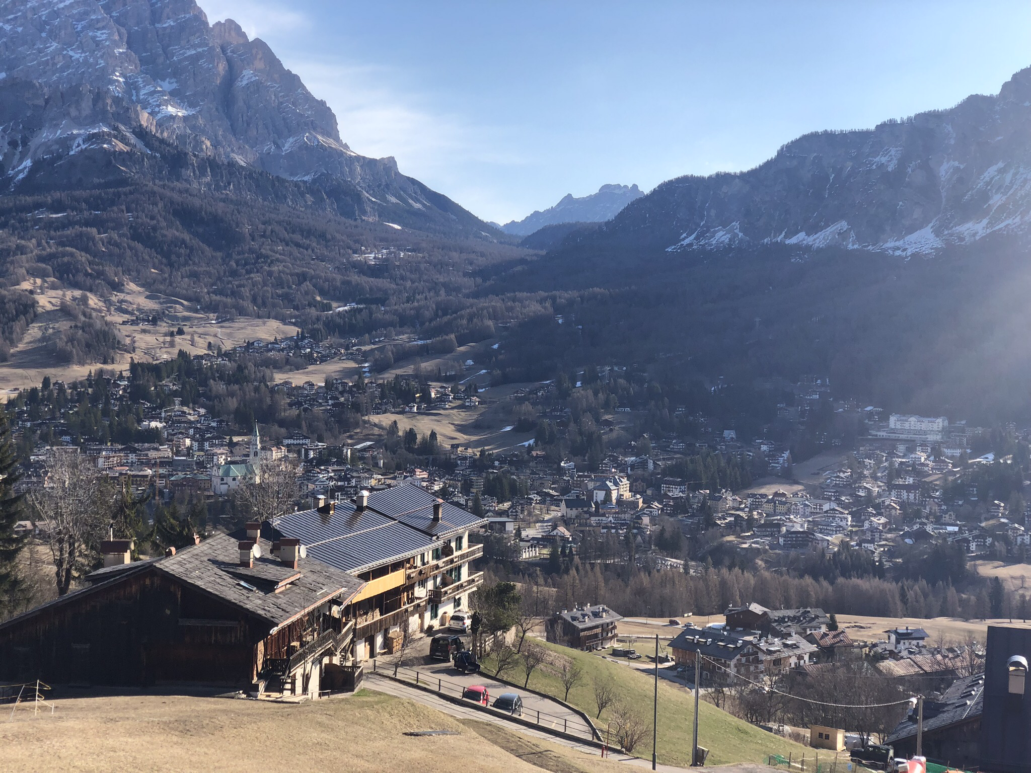 Auch Cortina d´Ampezzo liegt bereits in seinem Schnee losen Kessel ....