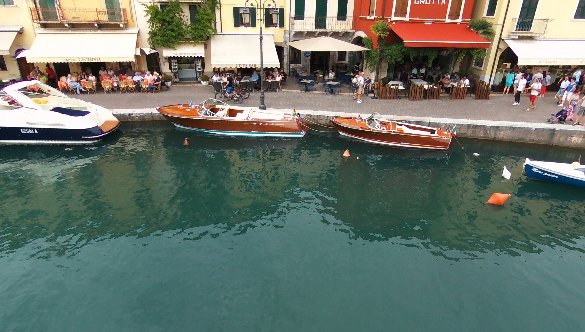 Meine Bebop Drohne habe ich in unserem Urlaub immer mit an Bord und lasse sie auch bei einem Besuch mit Hellmanns in Lazise über dem Hafen aufsteigen, um Photos von unseren Booten zu machen.