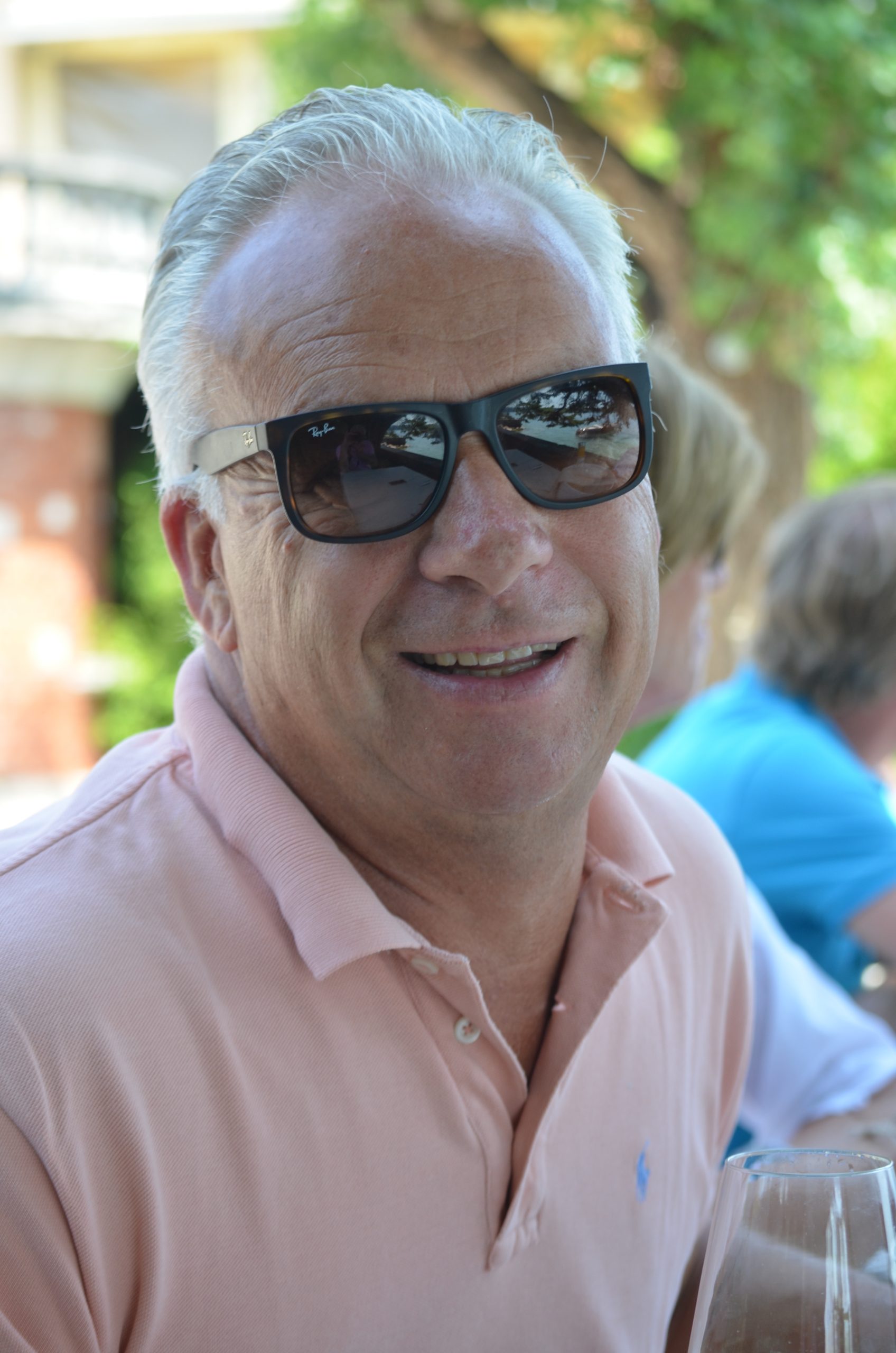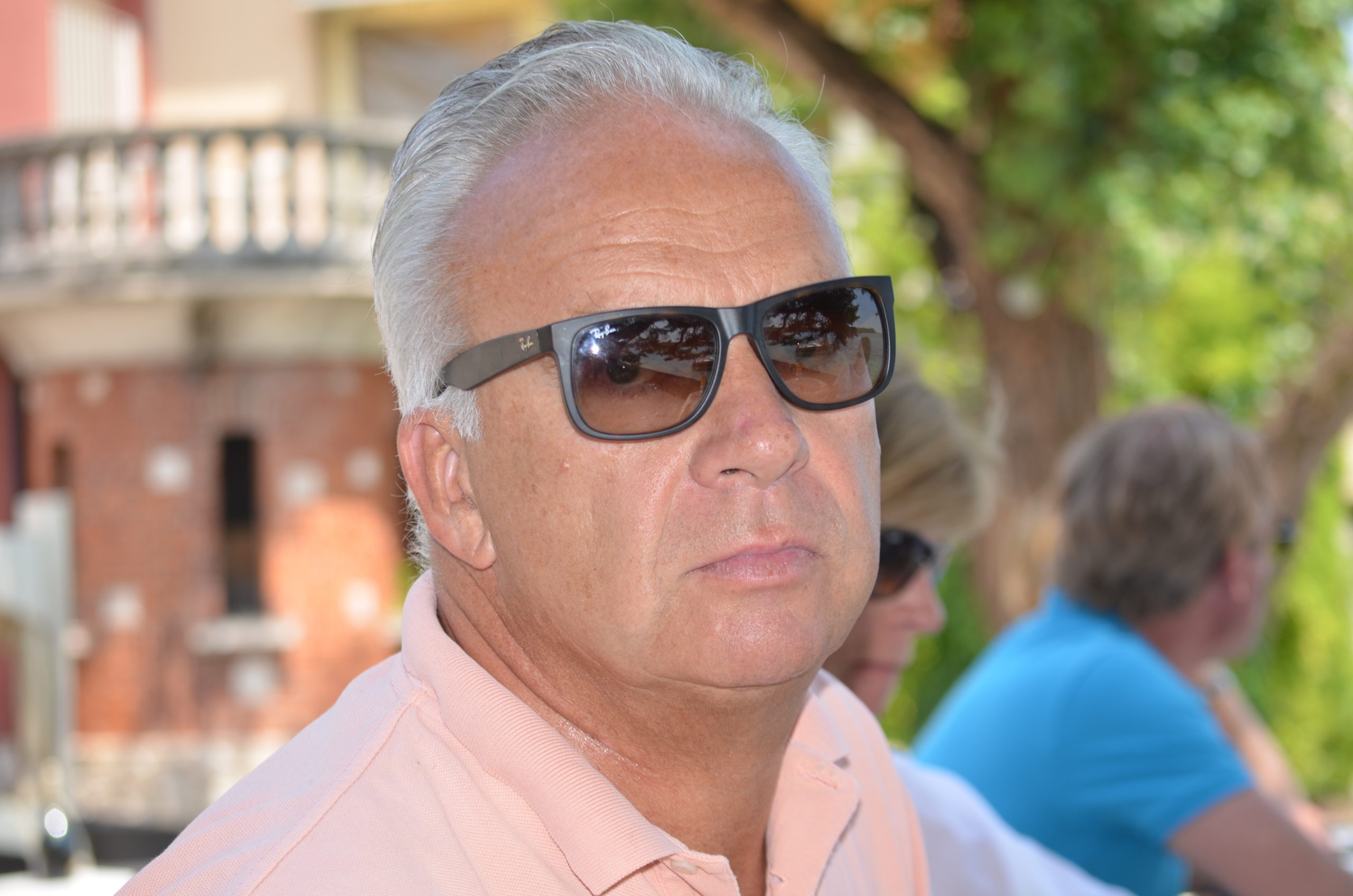 Obwohl er sich zunächst noch hinter seinem Glas versteckt, bleibt es kein Geheimnis, daß wir mit Eva und Thomas Hellmann unterwegs sind
