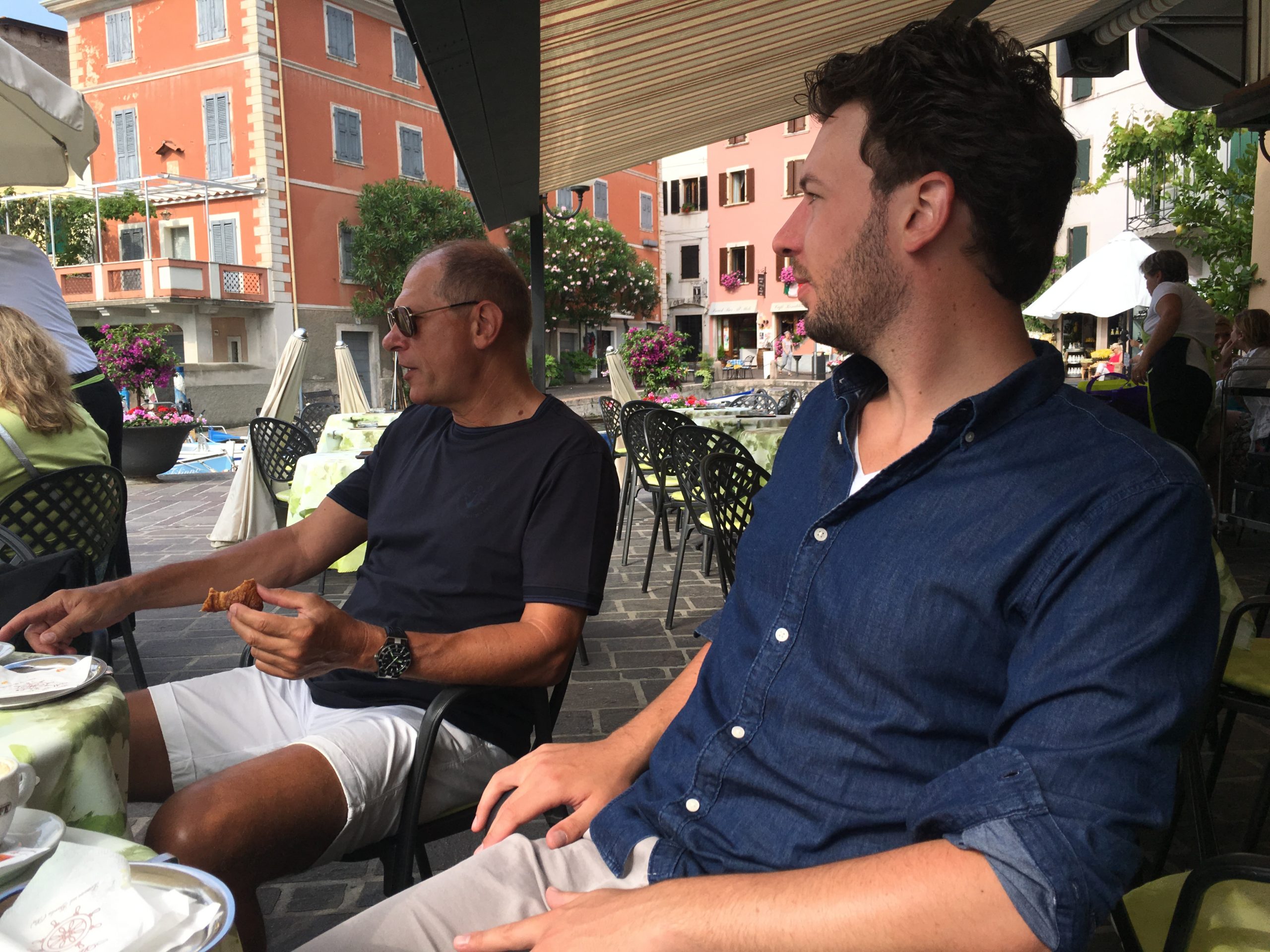 Von ihrem Ausflug ins Franciacorta fahren die beiden weiter und besuchen uns am Gardasee