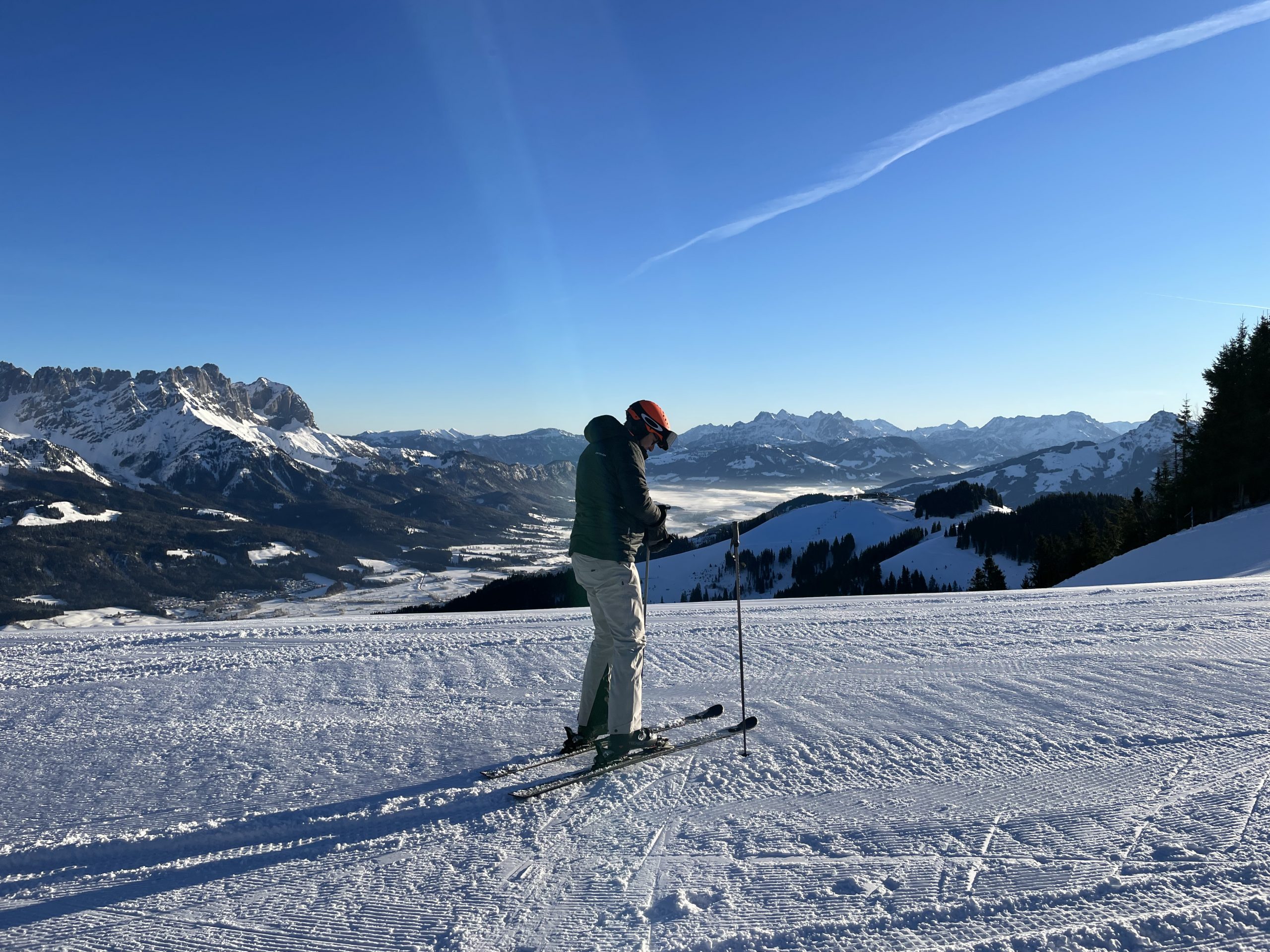 Durch Flexibilität & verbindliche Kommunikation klappt unser Ski-Tag immer wie am Schnürchen: Abfahrt: 6:15 Uhr / Zwischenstop am Aiblinger Pendler-Parkplatz: 7:00 Uhr / Einkleidung und Hardware Check in der Tiefgarage am Brandnerstadl: 7:45 Uhr / Abfahrt mit einer der ersten Gondeln in Scheffau: 8:00 Uhr und danach in 20+ Lifte wodurch wir bis um 11:30 Uhr ca. 6.000 Höhenmeter und 30 Pistenkilometer absolviert haben sollten / Gemeinsames Mittagessen auf der Terrasse der Tanzbodenalm bis 12:15 Uhr und um 13:45 Uhr sitzen wir wieder am Schreibtisch in der Stadt