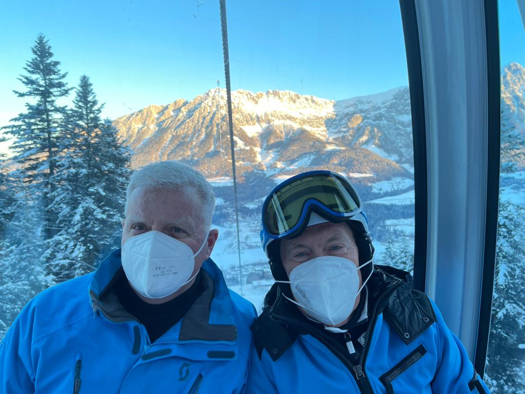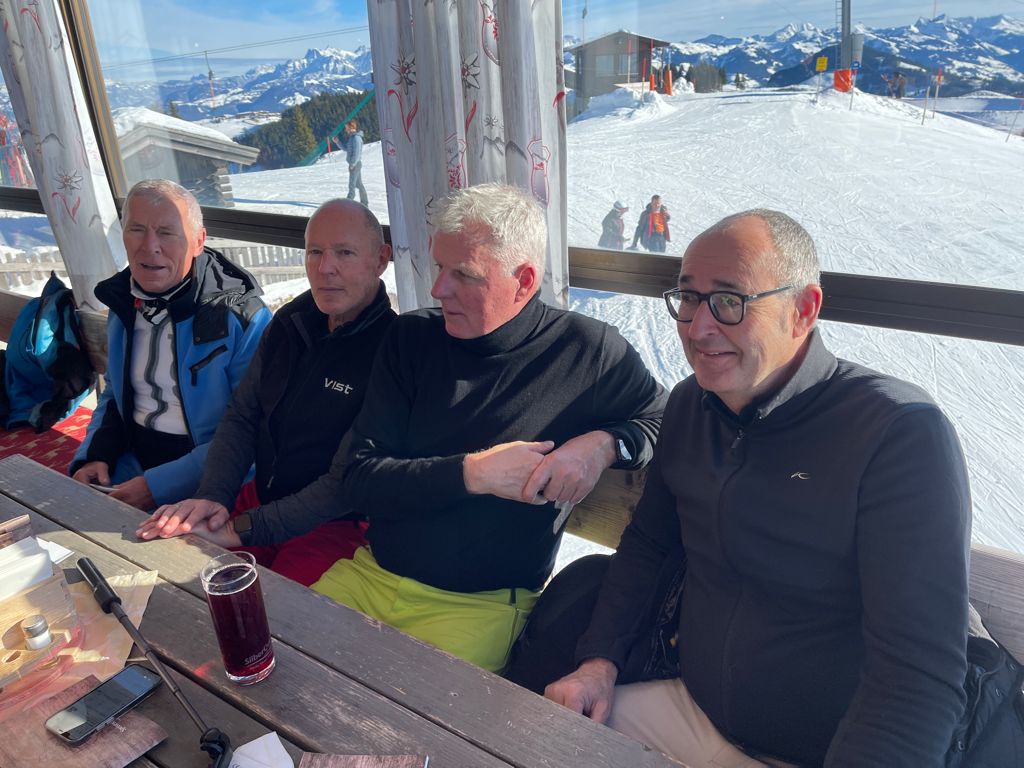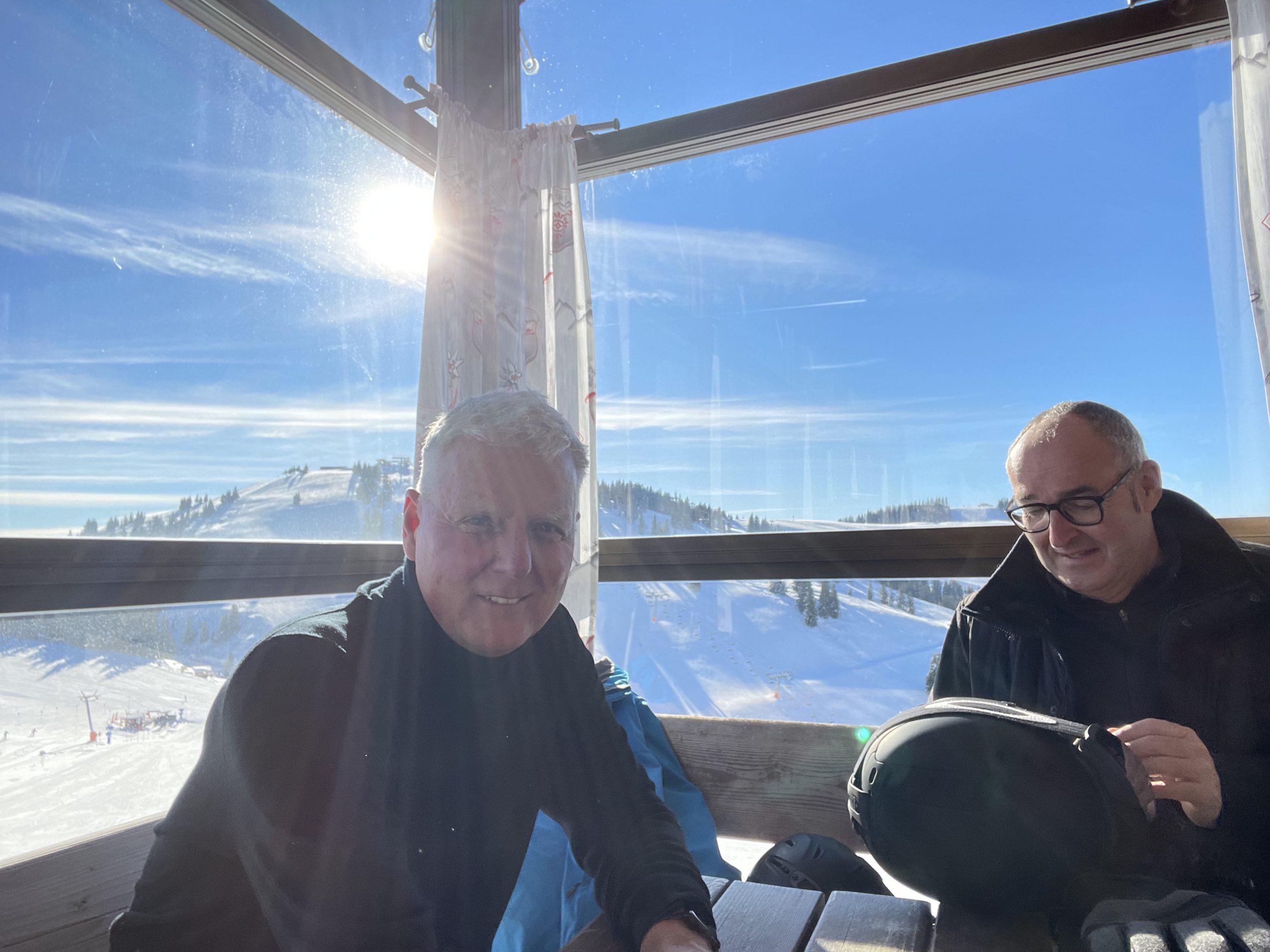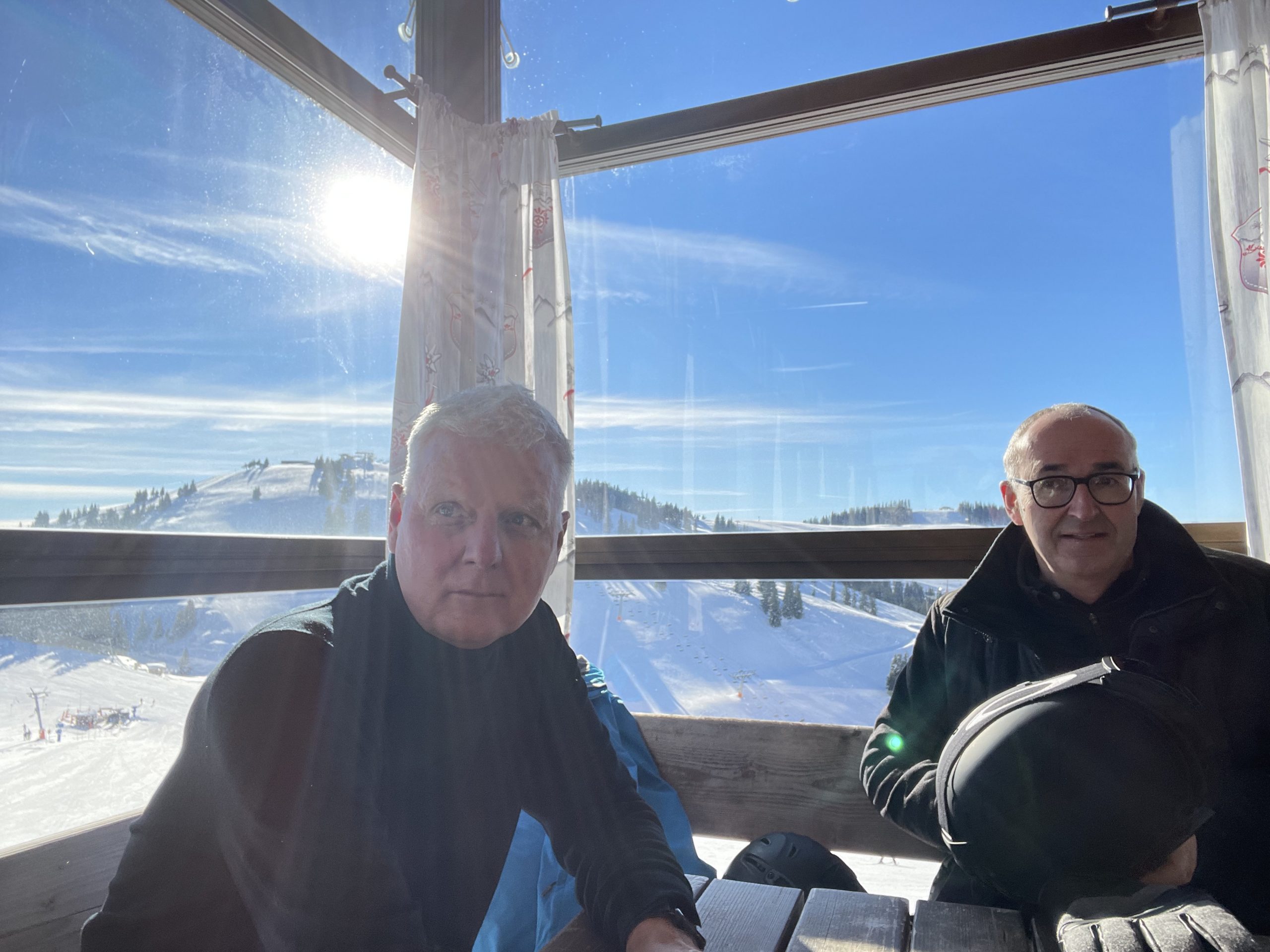 In dieser herrlichen Location geniessen Jürgen und Michael als langjährige Initiatoren unserer Skigruppen das Ende der Halbtageskartenzeit