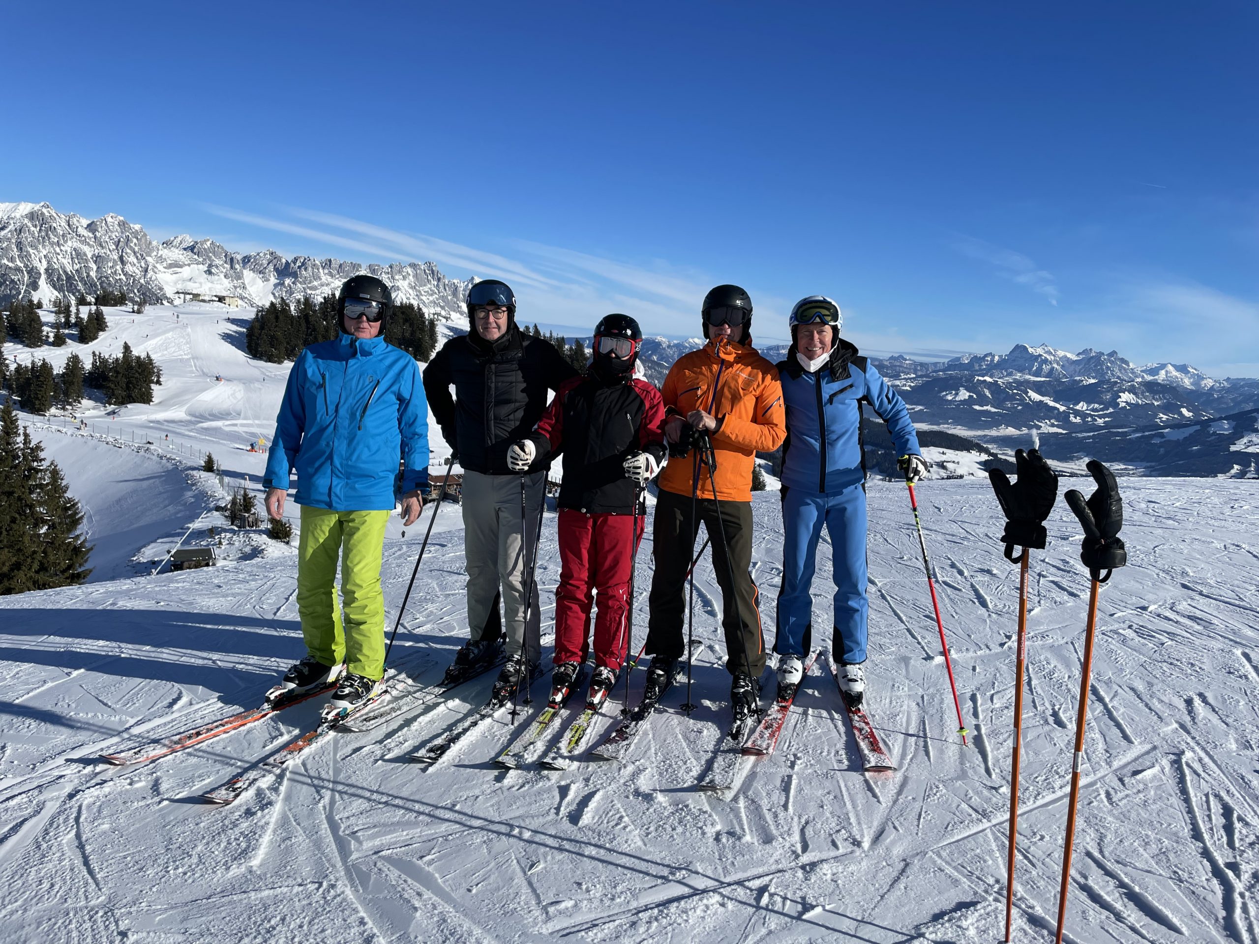 Durch Flexibilität & verbindliche Kommunikation klappt unser Ski-Tag wie am Schnürchen: 6:30 Uhr - Abfahrt in Bogenhausen / 7:00 Uhr - Aufnahme von Jürgen und Charlie am Pendler Parkplatz in Bad Aibling / 8:00 Uhr - gemeinsam mit Thomas und Karl geht´s in die erste Gondel in Scheffau und danach in weitere 22 Lifte wodurch bis mittags mehr als 8.000 Höhenmeter und 35 Pistenkilometer absolviert sind / 12:00 Uhr - Gemeinsames Mittagessen in der Tanzbodenalm und um 13:00 Uhr direkt zurück an den Schreibtisch