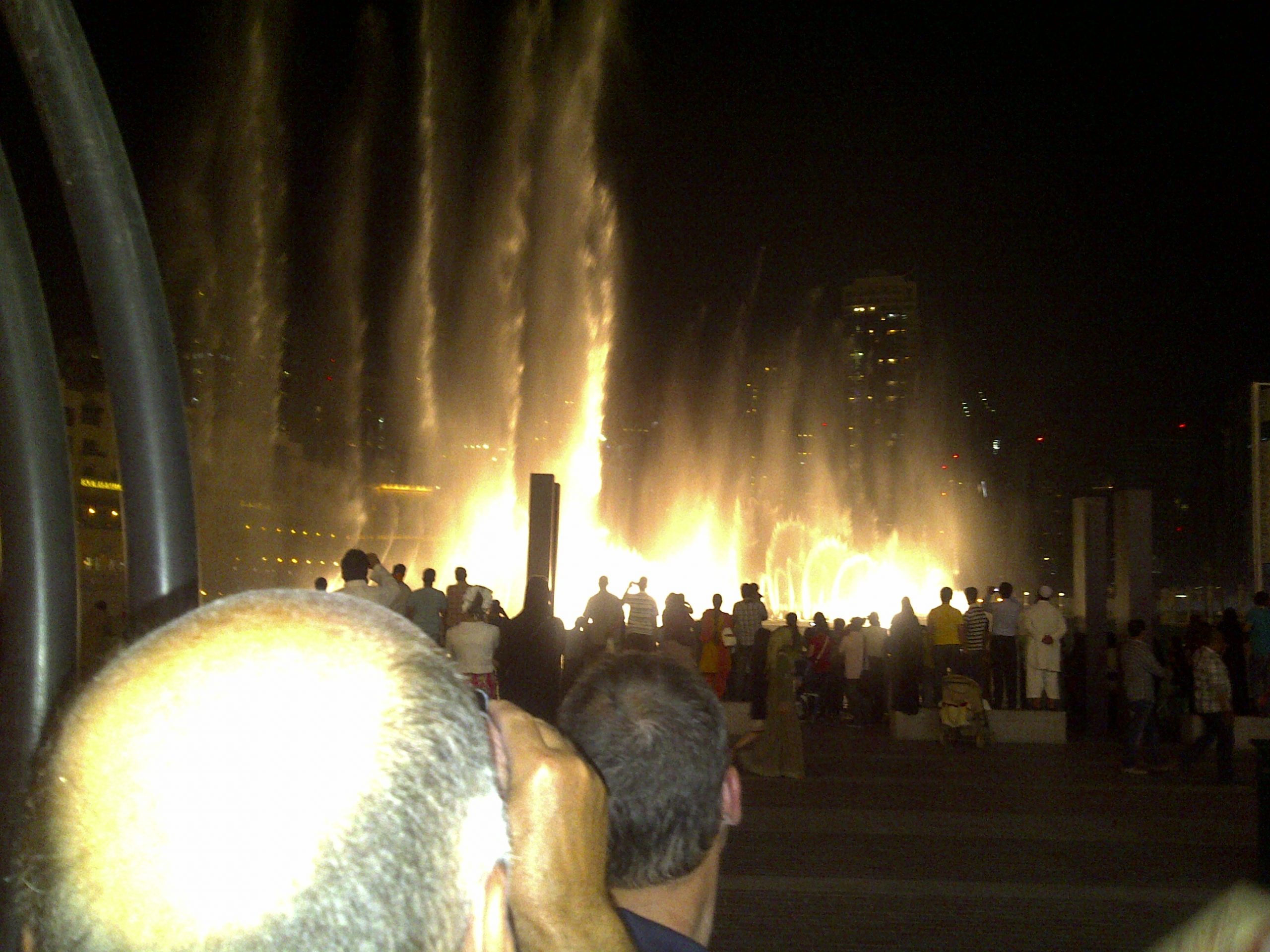 Unterhalb des Towers ist ein künstlicher See angelegt, der jeden Abend mit eindrucksvollen Wasserspielen punktet ... das denkt sich sicher gerade auch mein Golfbuddy Rainer aus Hongkong, dessen Hinterkopf sich in dieses Photo geschoben hat