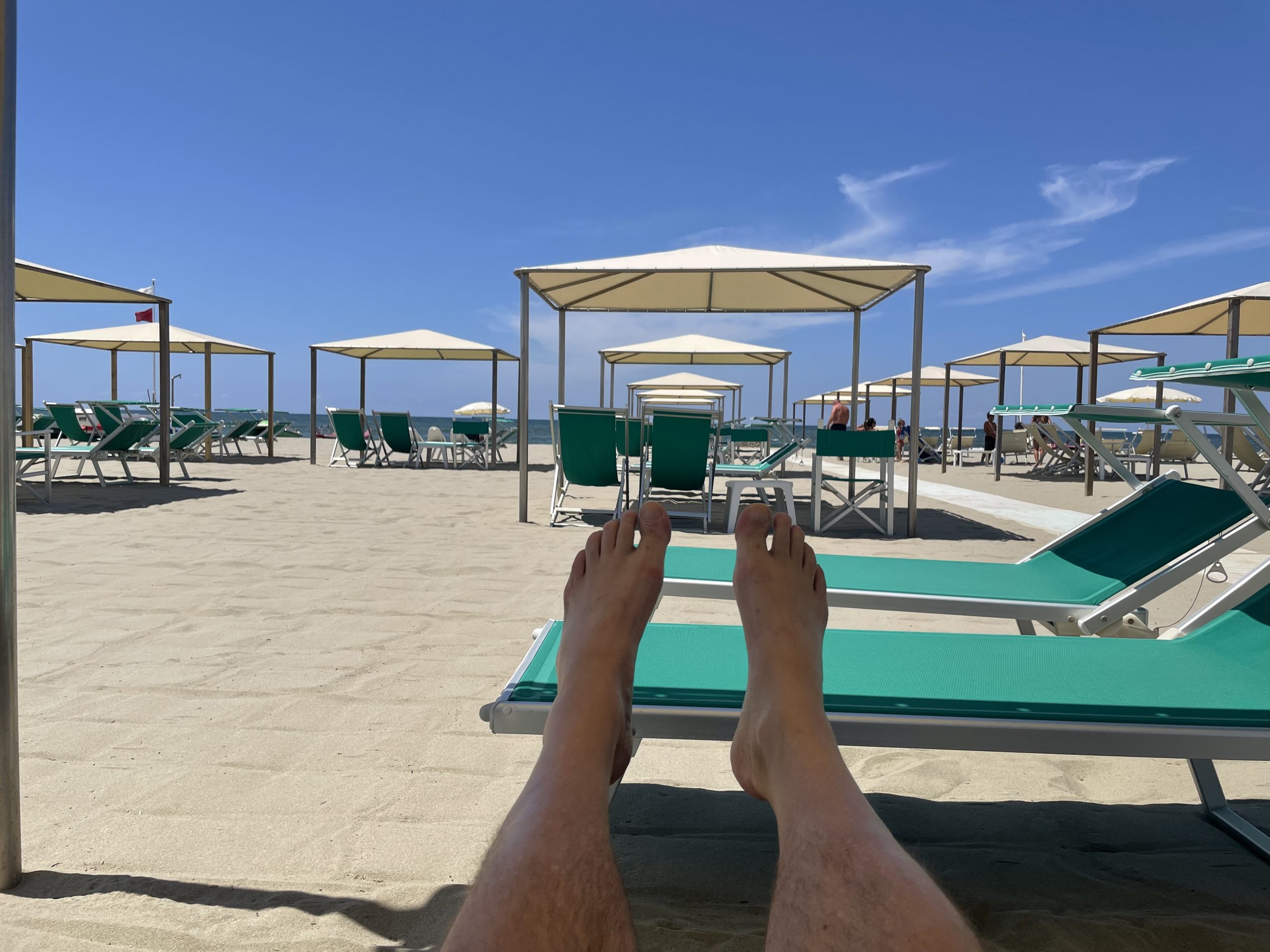 Bevorzugt waren wir allerdings im Bagno Paradiso al Mare in Forte dei Marmi zu Gast ... wie auch schon 17 Jahre eher mit Hellmanns. An die damaligen Tarife kann ich mich nicht mehr erinnern ... heute kostet der Spaß (Miete der Liegen mit Sonnendach) schlappe 170 Euro am Tag.