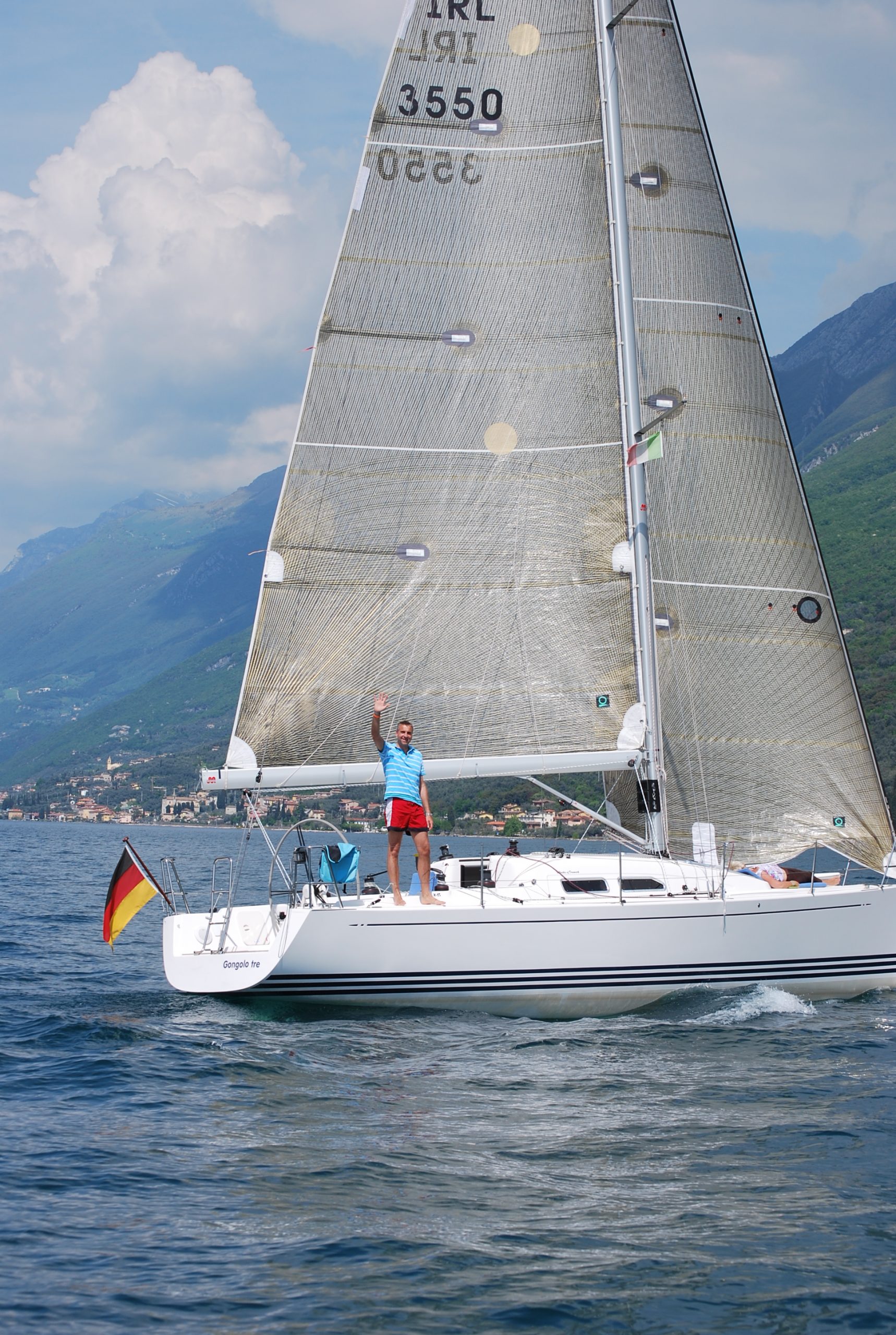 Captain Tomaso voll konzentriert in voller Fahrt auf unserer Backbord Seite ... wer hat jetzt Vorfahrt?
