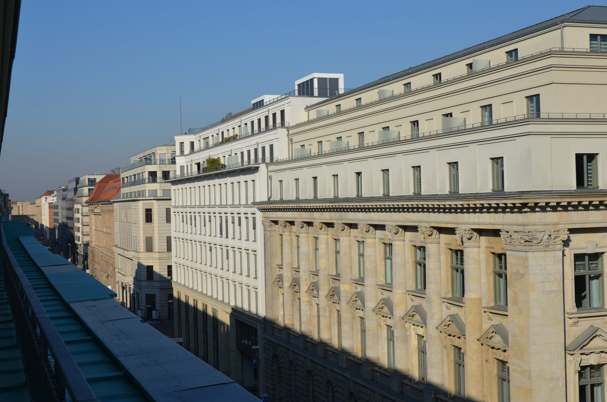 Im März waren die Gewinner des Wettbewerbs der innovativsten deutschen Unternehmen bei GOOGLE eingeladen. Mit Sympatex war ich im Vorjahr als besonders innovativ ausgezeichnet und durfte daher mit dabei sein. Der US-Konzern Google hat sich mitten in Berlin im historischen Zentrum angesiedelt, und zwar im Gropius-Ensemble im Forum an der Museumsinsel. Dort bezieht das Unternehmen erstmals ein eigenständiges Gebäude in der Hauptstadt. Es umfasst eine Fläche von 8.500 Quadratmetern, auf der bis zu 300 Mitarbeiter Platz zum arbeiten finden, dazu noch Cafeterien und Konferenzräume. Daneben wird in das Gebäude der Berliner Youtube-Space einziehen, der zur Zeit noch in Tempelhof liegt. Außerdem entsteht ein Schulungszentrum der Bildungsinitiative "Google Zukunftswerkstatt". Im ersten Schwung ziehen circa 130 "Googler" in die neuen Räume, darunter Sales, Cloud, Google Play, Policy, Google for Startups und Youtube. Das Berliner Google-Büro ist außerdem Sitz einiger KI-Forscher, die sich mit Grundlagenforschung und Anwendung von künstlicher Intelligenz, insbesondere von Deep Learning, beschäftigen. Für die Mitarbeiterinnen und Mitarbeiter bietet das neue Büro verschiedene chice Annehmlichkeiten: ein Fitnesscenter, ein Massageraum sowie modern gestaltete Konferenzräume unterschiedlicher Größe. In den Namen der Räume wurden zum einen skurrile Orte Berlins wie der "Bierpinsel" oder das "Kumpelnest 3000" verewigt. Zum anderen finden sich hier zahlreiche legendäre Berliner Songs wie "Dickes B", "99 Luftballons" oder "Heroes" in den Raumnamen wieder. Es ist spannend zu sehen, wie die "neue" Welt sich so mühelos in die "alte" Welt einfügt. Aber die Stadt ist ja permanent im Wandel, Baustellen, wohin man schaut. Von der Dachterrasse des wunderbaren Hotel de Rome behält man wenigstens ein wenig den Überblick.
