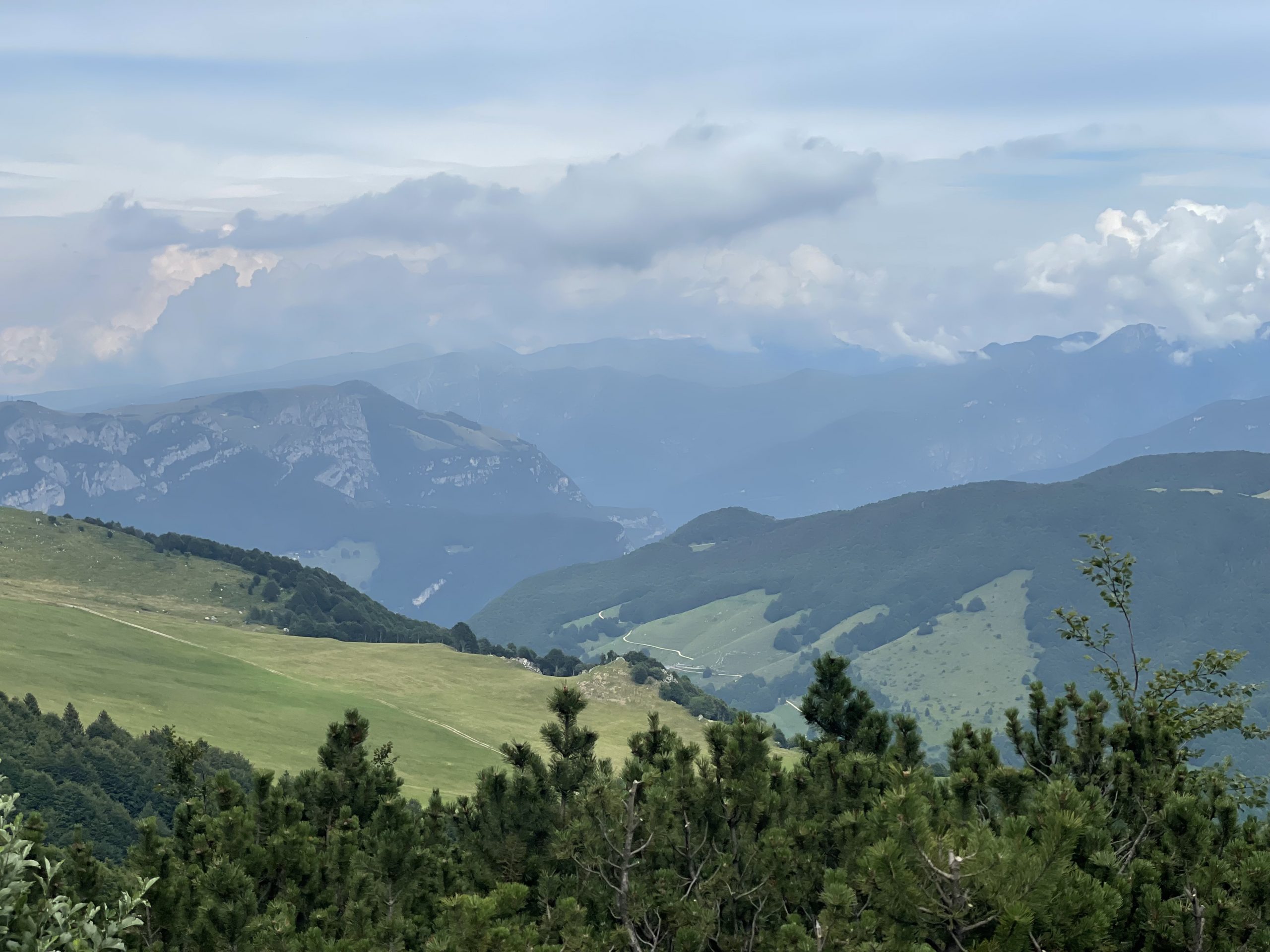 Hinter dem Hauptkamm des Monte Baldo entdeckt man am Ostufer eine andere Welt, die mit dem uns bekannten Gardasee am Westufer wenig gemein hat .... zahlreiche Almen und Hunderte von Kühen