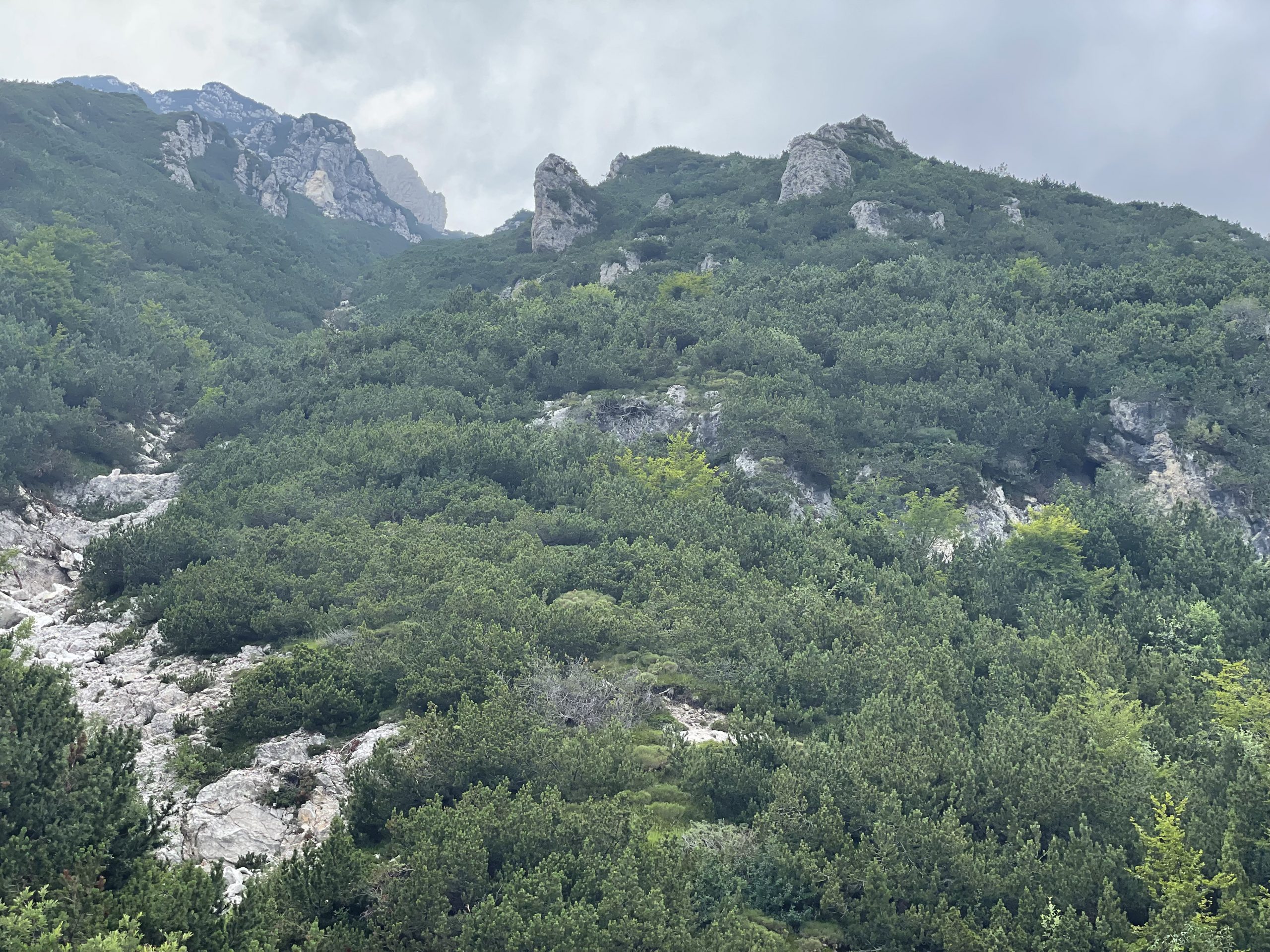 Der höchste Punkt der Strecke ist die Cima Valdritta, über die es aus einer mediterran geprägten Kulturlandschaft durch alle Vegetationszonen hinauf in die hochalpine Felslandschaft geht. Vom See aus ist bis hierher eine Höhendifferenz von 2000 Meter zu bewältigen. Zum Glück klingt die Strecke dann auf der anderern Seite auch wieder sanft aus.