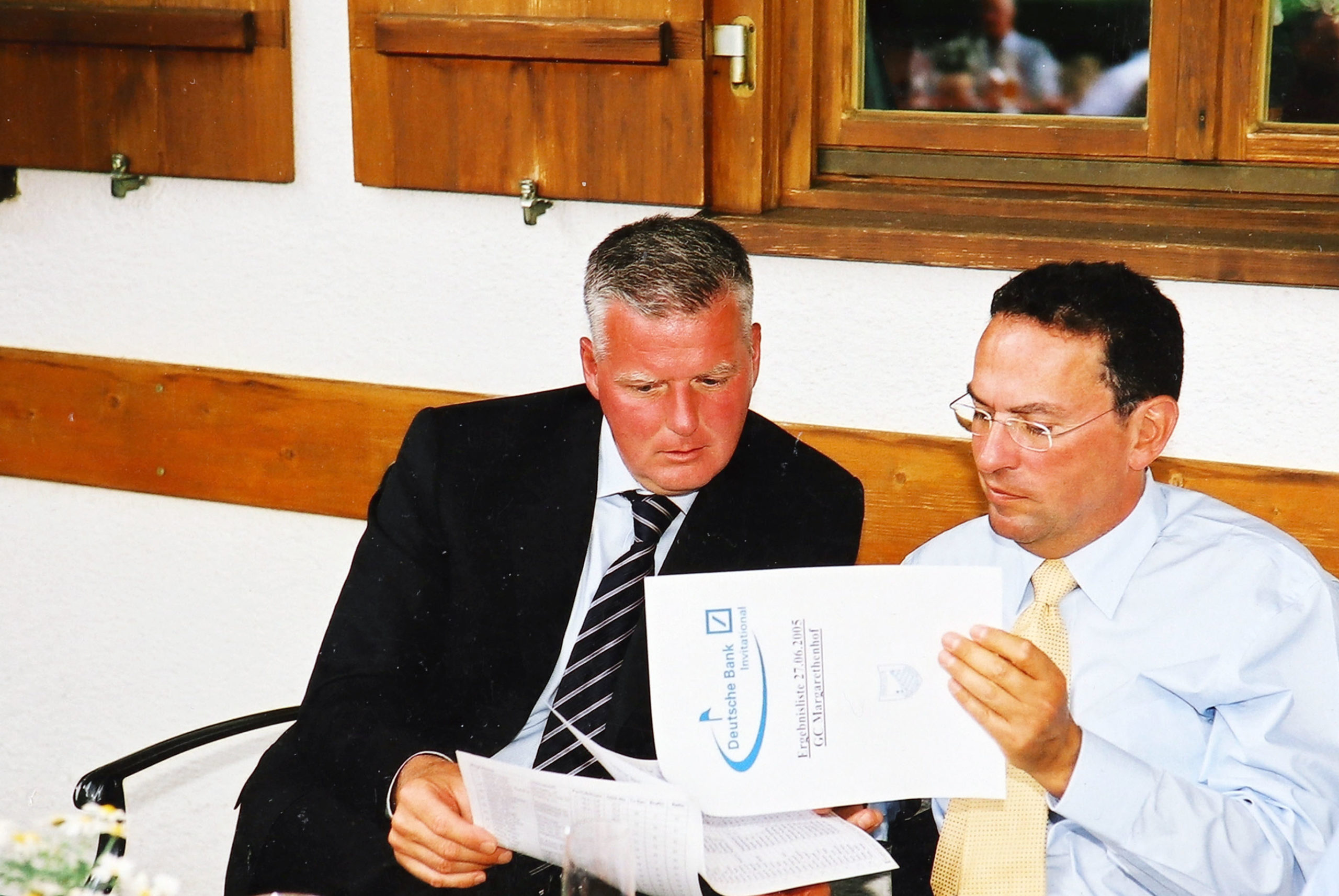 Ende Juni war ich als Kunde der Deutschen Bank München von Manfred Graeff und Uli Schürenkrämer zum jährlichen Event der Deutschen Bank im Golfclub Margarethenhof eingeladen. In einer grandiosen Paarung mit meinem Flightpartner Herbert Vogl haben wir uns bei diesem Scramble hervorragend ergänzt und dadurch auch einen souveränen Nettosieg erobert. Als bayerische Landessieger waren wir damit für das Europafinale in Valderrama qualifiziert und von der Deutschen Bank nach Südspanien eingeladen. Auf der Runde oberhalb des Tegernsees lief alles nach Plan und unsere Flightpartner Kellerhals und Haselberger haben uns zusätzlich motiviert alles zu geben. Ein sonniger Tag mit tollem Ergebnis besonders für Herbert, den damaligen Handicap Schoner. Die Ruhe und Beschaulichkeit des idyllischen 18-Loch-Platzes des Golfclub Margarethenhof, eingebettet in die sanften Hügel des ausebbenden Voralpenlandes in Marienstein bei Waakirchen, stellt für passionierte Golfspieler zudem etwas Besonderes dar. Vom Abschlag der Bahn 3 - einer der höchstgelegenen Abschläge Deutschlands - genießen Golfer an klaren Tagen eine traumhafte Fernsicht bis nach München.