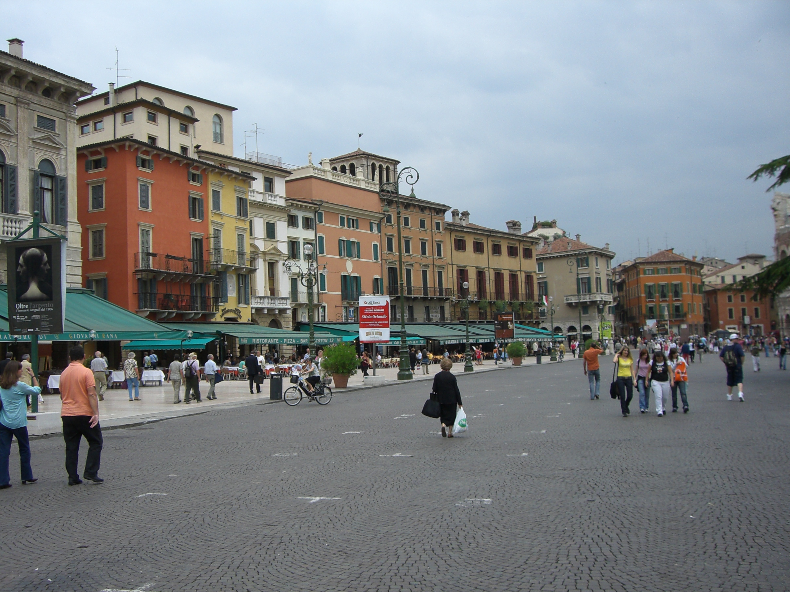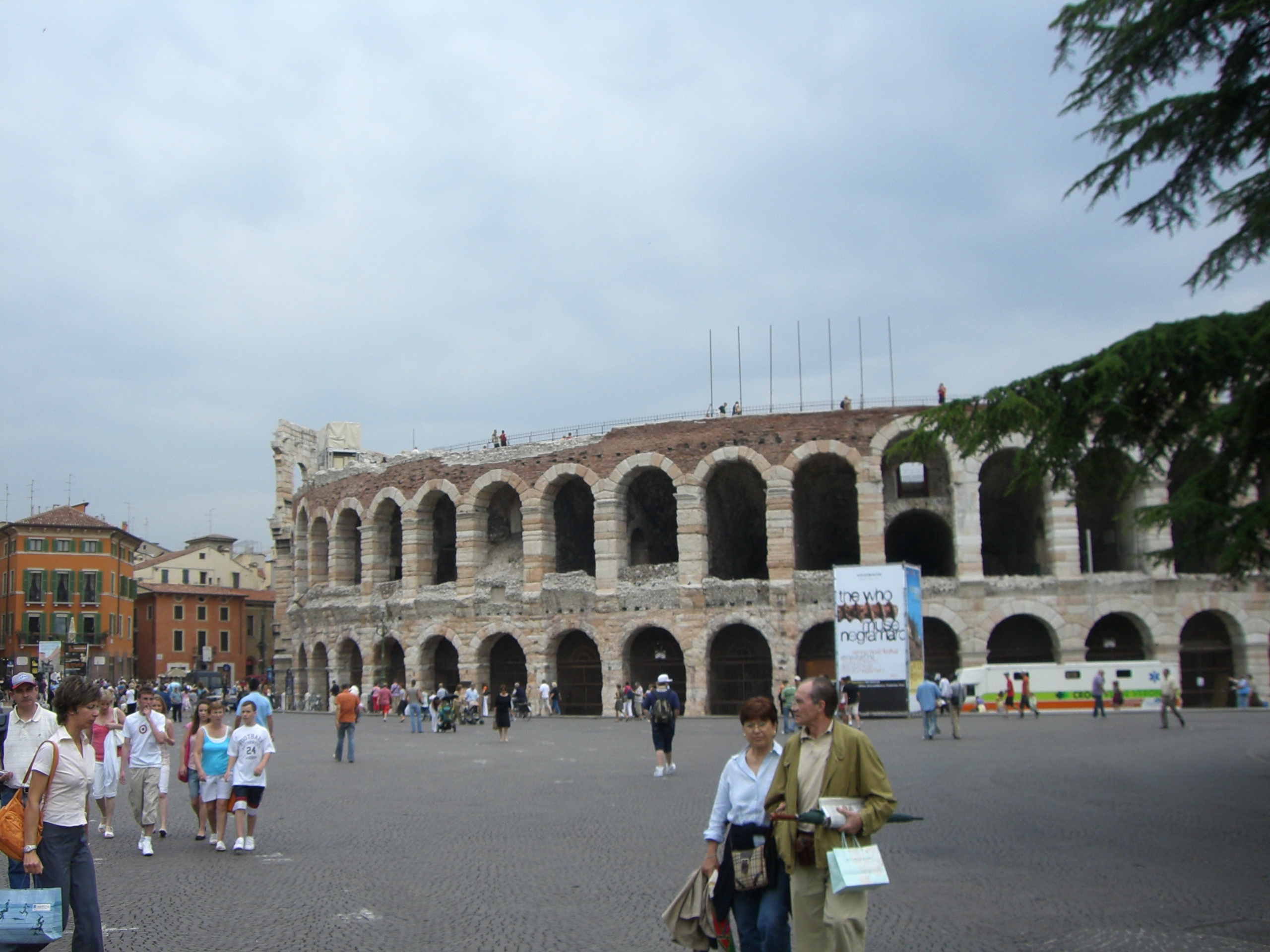 Im Sommer waren Annette und ich verschiedene Male für jeweils eine Woche am Gardasee und wohnten in der Zeit noch ein letztes Mal im Hotel Belle Riva in Salò, bevor wir dann im folgenden Jahr endgültig zu Dierk & Michi in die Via Panoramica umzogen. Wir haben viele Ausflüge mit dem Boot gemacht und waren auch immer wieder am Ostufer, wo wir neben Lazise auch Verona besuchten. Die Stadt von Romeo und Julia gilt von Norden kommend als erste typisch italienische Stadt und zudem als ein besonders romantischer Ort. Verona ist ein Platz voll Leben und Geschäftigkeit. Die Stadt ist von seltener Schönheit, die vor allem durch ihre geschichtliche Entwicklung und die unvergleichbar gut erhaltenen historischen Bauten sowie seine geografische Lage zurückzuführen ist. Verona genießt außerdem weltweiten Ruhm für sein gut erhaltenes und stets mit Leben gefülltem Amphitheater, die Arena, und der Assoziation vom berühmtesten Liebespaar der Geschichte. Wer Verona einmal besucht hat, versteht, dass diese Stadt neben Romeo und Julia noch weitaus mehr zu bieten hat. Mit einer unbeschreiblichen Magie verführt sie zum ständigen Wiederkehren. Die Stadt ist stets in warmes Licht getaucht und bietet viele romantische Plätze, Gassen und beeindruckende Sehenswürdigkeiten. Am Fuße der Voralpen gelegen und als Kreuzpunkt zwischen Europa und der Mittelmeerregion kommt die Umgebung und Landschaft um die Stadt herum in den Genuss einer besonderen Formation. Im Norden wird die Stadt von den Bergen Lessiniens umschlossen. Die Stadt Verona wurde in vorchristlicher Zeit von den Rätern und Euganeern gegründet und befand sich schließlich ab 89 v. Christus unter römischer Kolonie. Nach verschiedenen weiteren Unterwerfungen wurde Verona 1797 österreichisch und erst 1866 fiel Verona an das Königreich Italien.