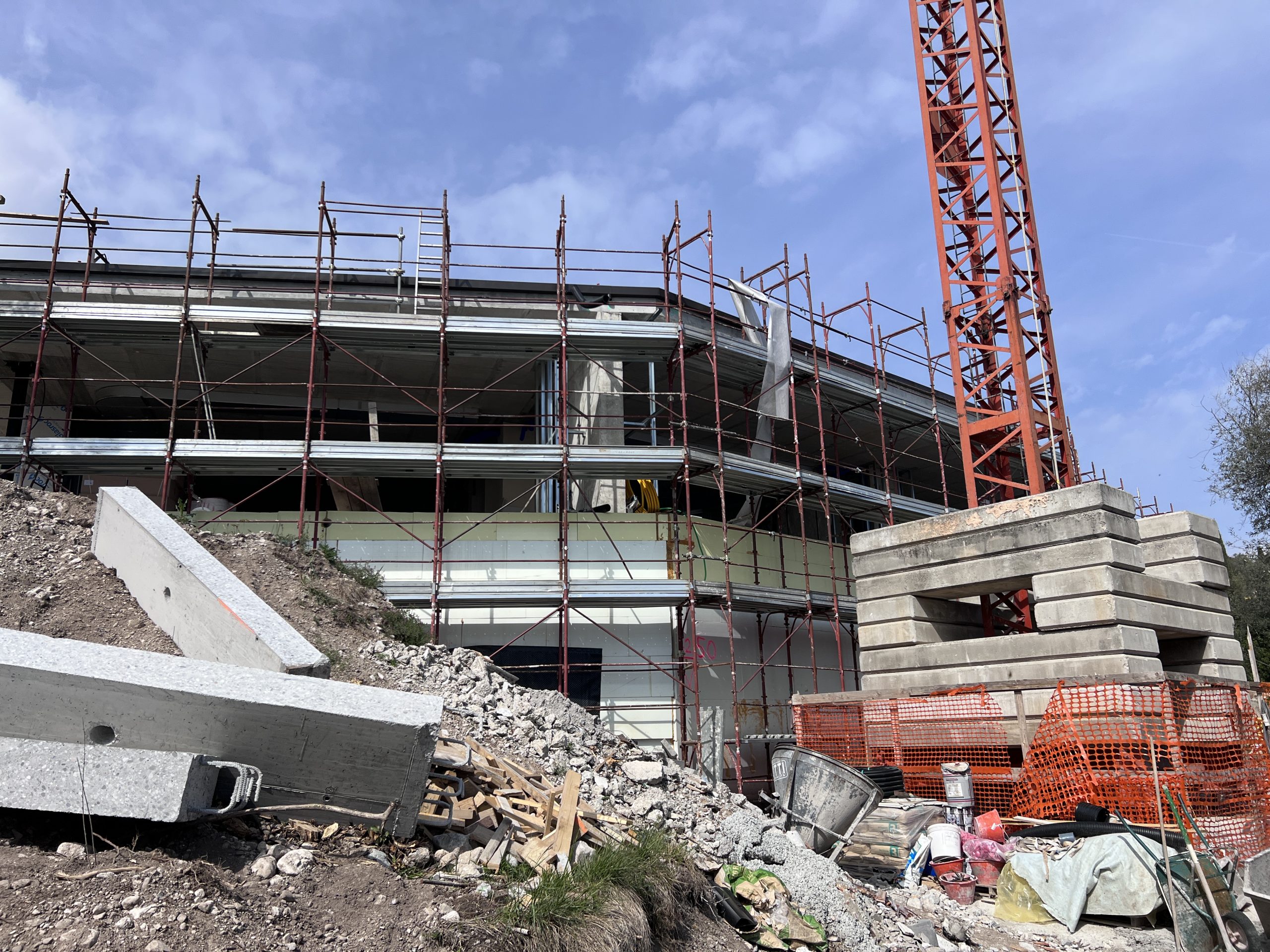 Der erste Stop nach meinem Start in der Via Panoramica geht an der längsten eingewachsenen Ruine unterhalb der Fasano Abzweigung vorbei zu einer beeindruckenden großen neuen Villa direkt unterhalb von uns. Hier ist demnächt die Rohbau Fertigstellung zu erwarten .