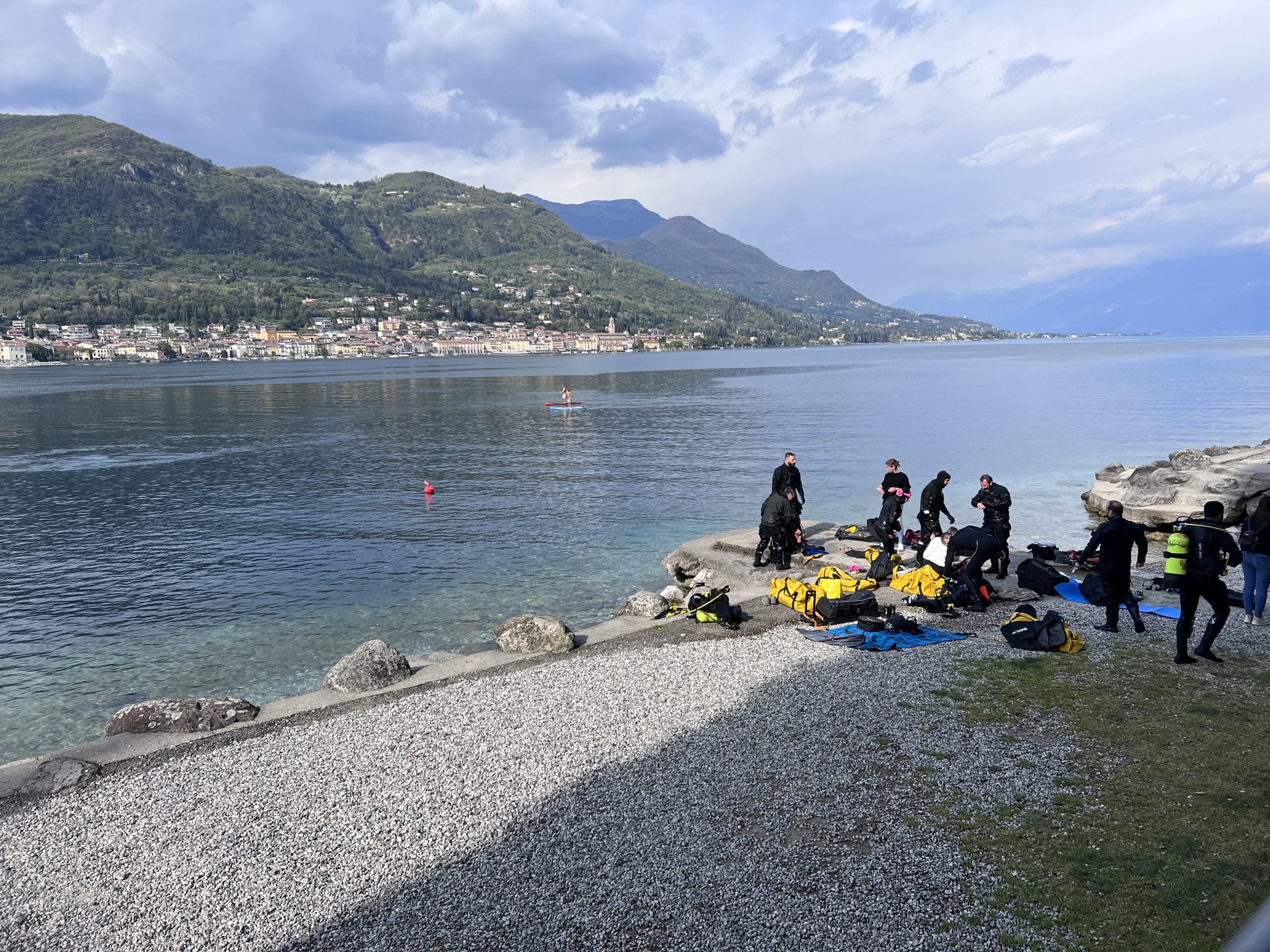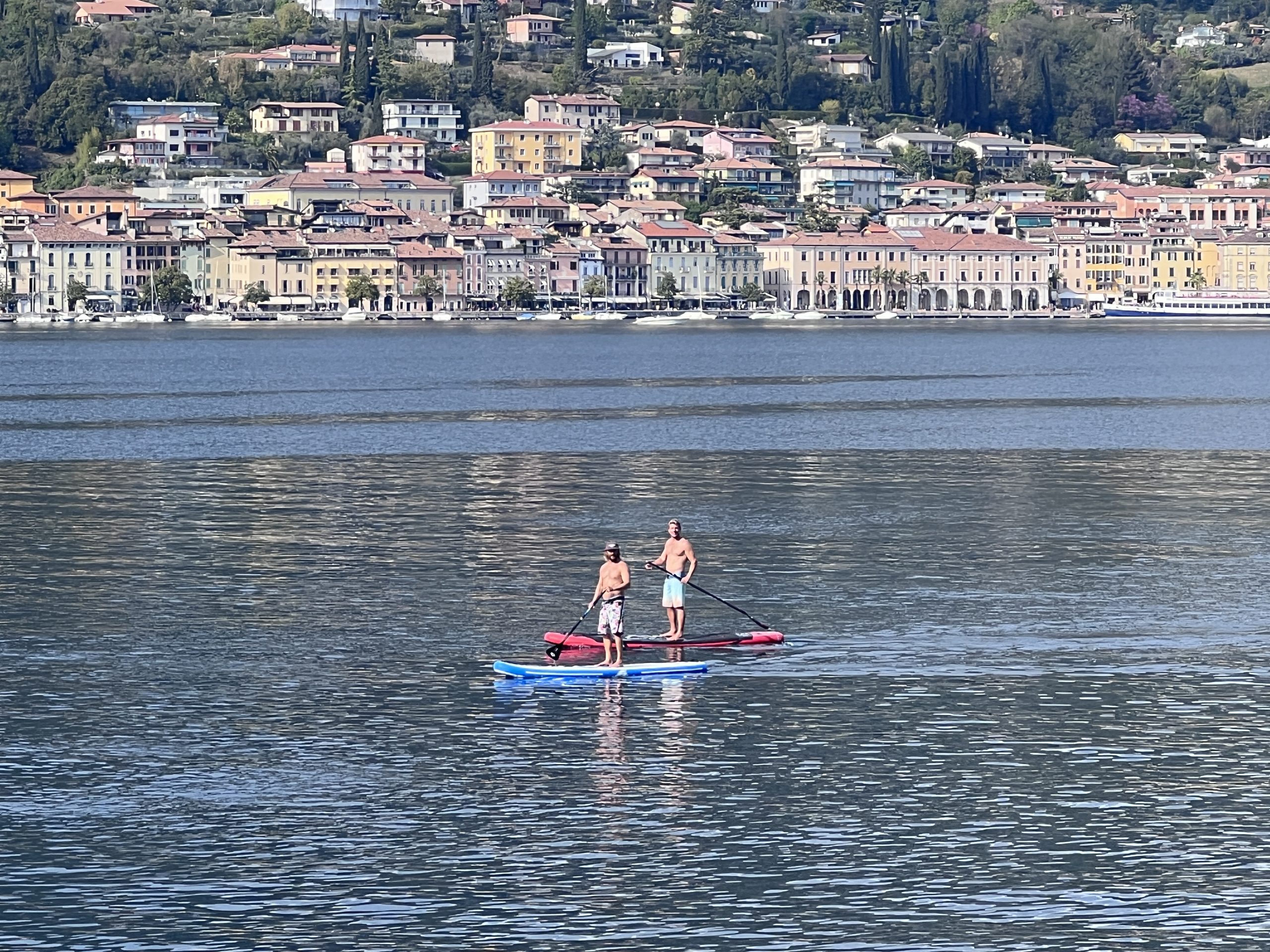 Ich umrunde den See in Richtung Via Magnolie in San Felice und entdecke am Südufer nicht nur sportliche Taucher, sondern auch zwei unerschrockene Stand Up Paddler auf ihren Boards