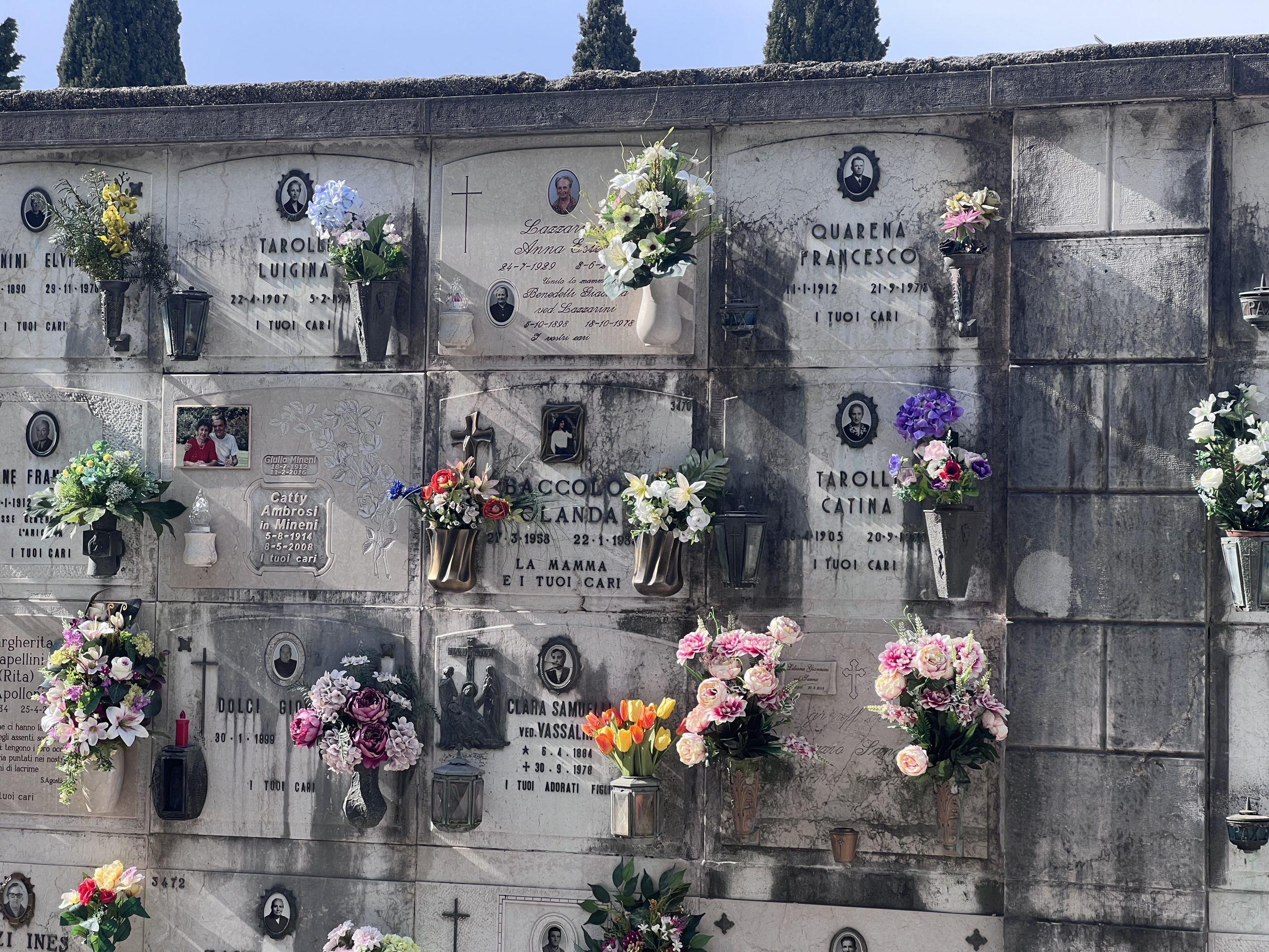 Vor den Grabstätten stehen zahlreiche rollbare Leitern, durch die man zu den Nischen mit den Urnen kommt