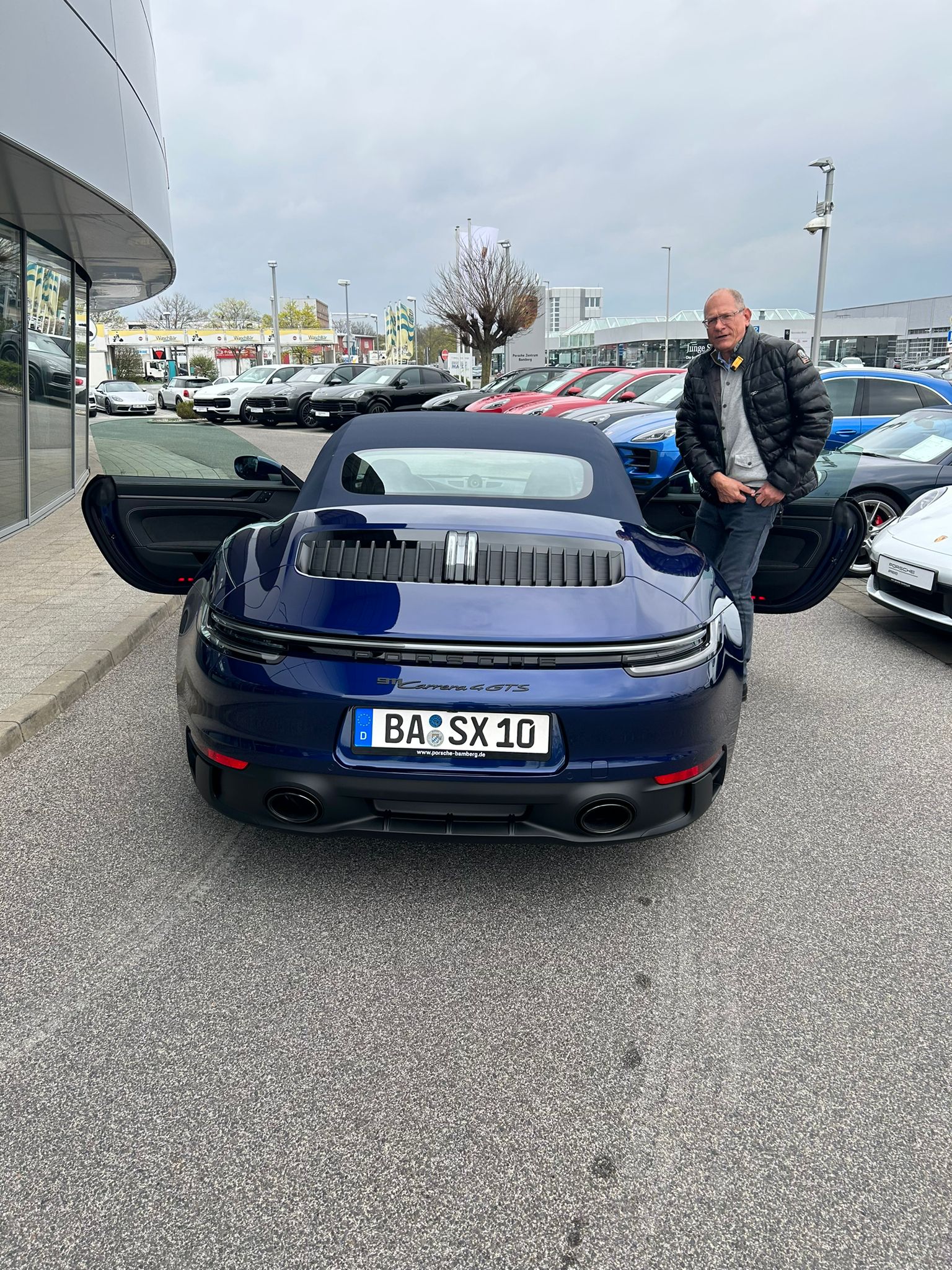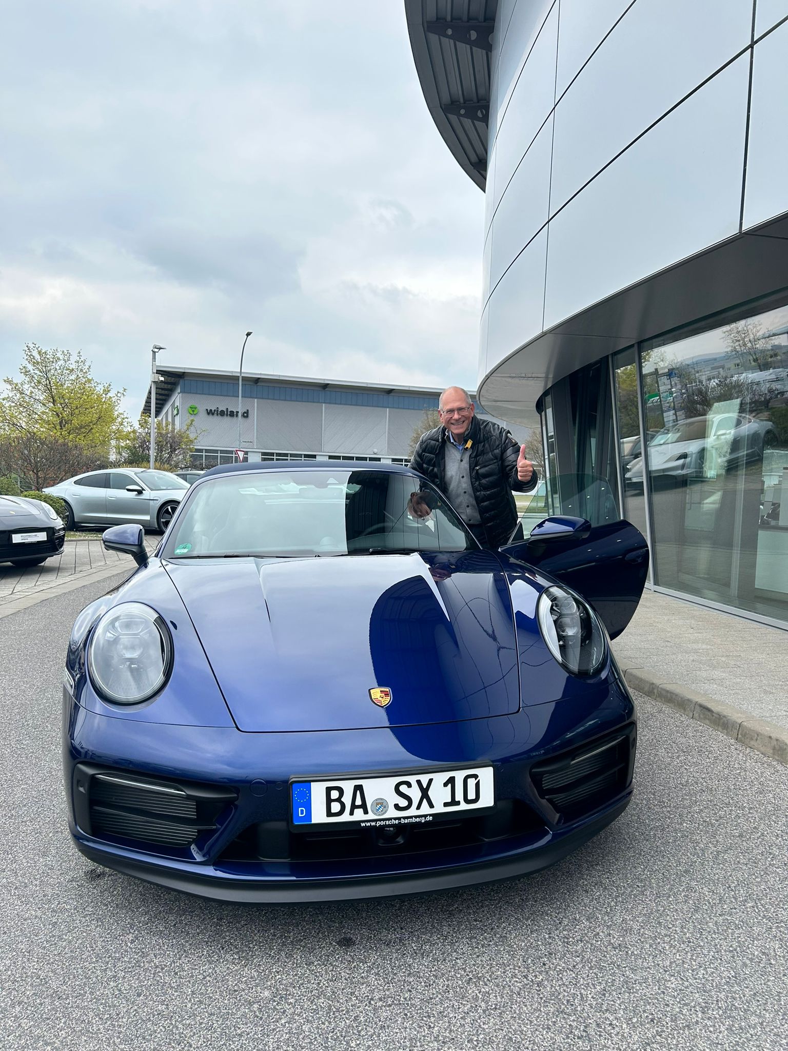 Klaus Schneider macht es in Bamberg auch richtig ... er radelt nicht selbst, sondern holt sich sein neues 911er Cabrio beim Porsche Händler ab