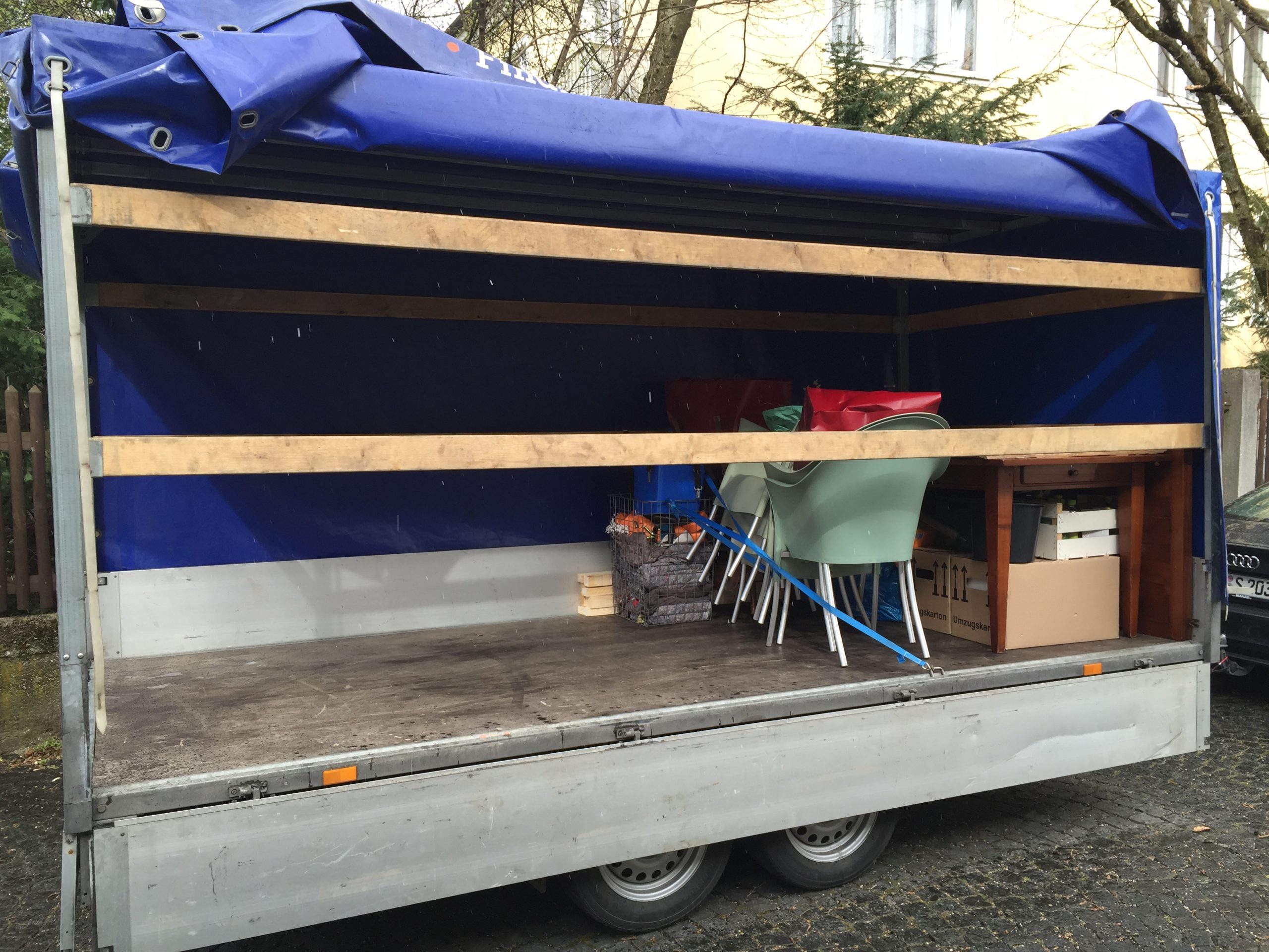 Aus München bringen wir im Hänger einen neuen Esstisch sowie neue Stühle mit