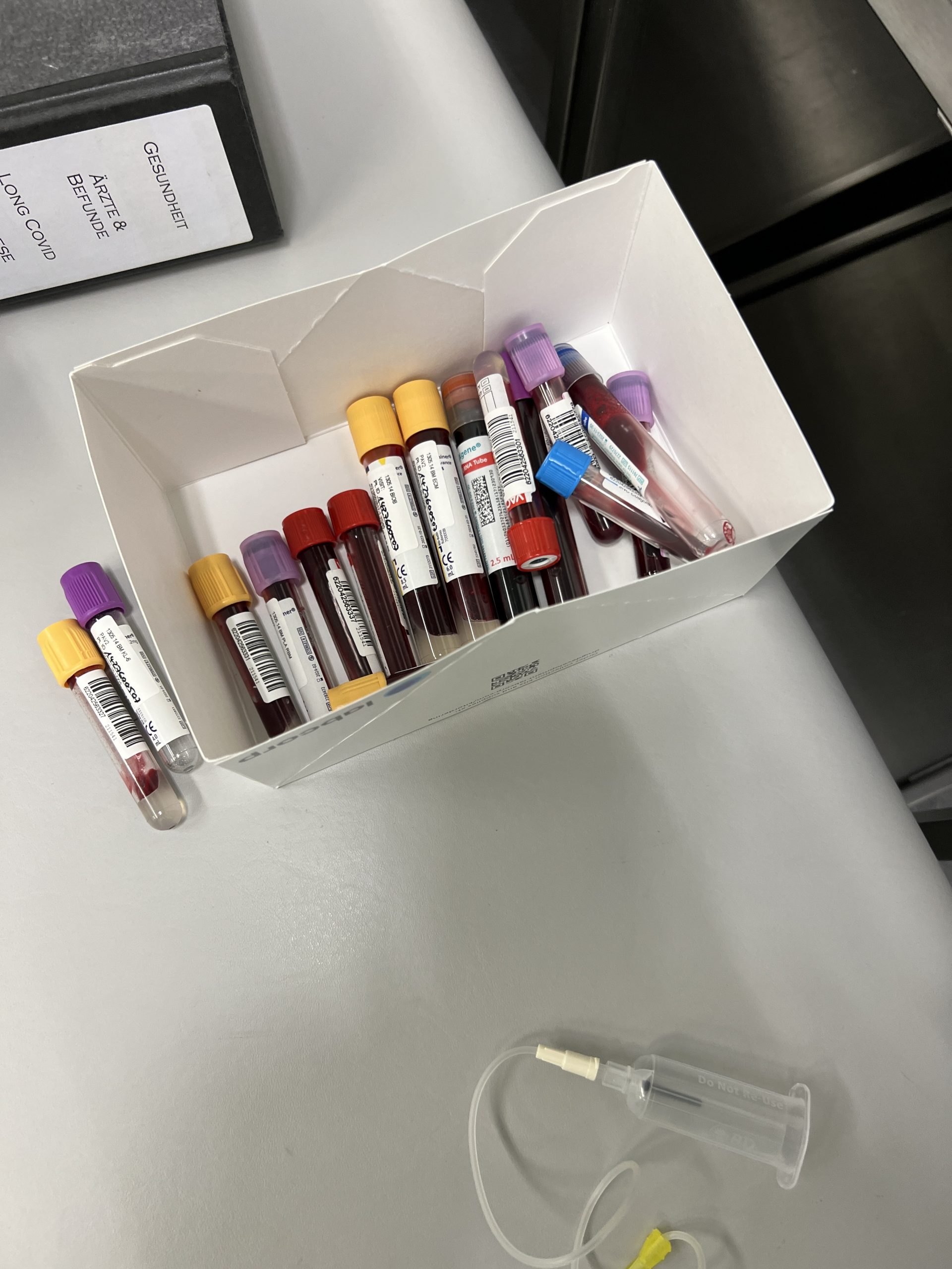 In der Lungenabteilung des Klinikums Großhadern werden mir 17 Ampullen Blut abgezapft. Anschließend waren meine Venen platt und ich bekam zudem die ersten Tabletten des neuen Wirkstoffs verabreicht, die meine Magen-Darm Flora endgültig durcheinander brachte