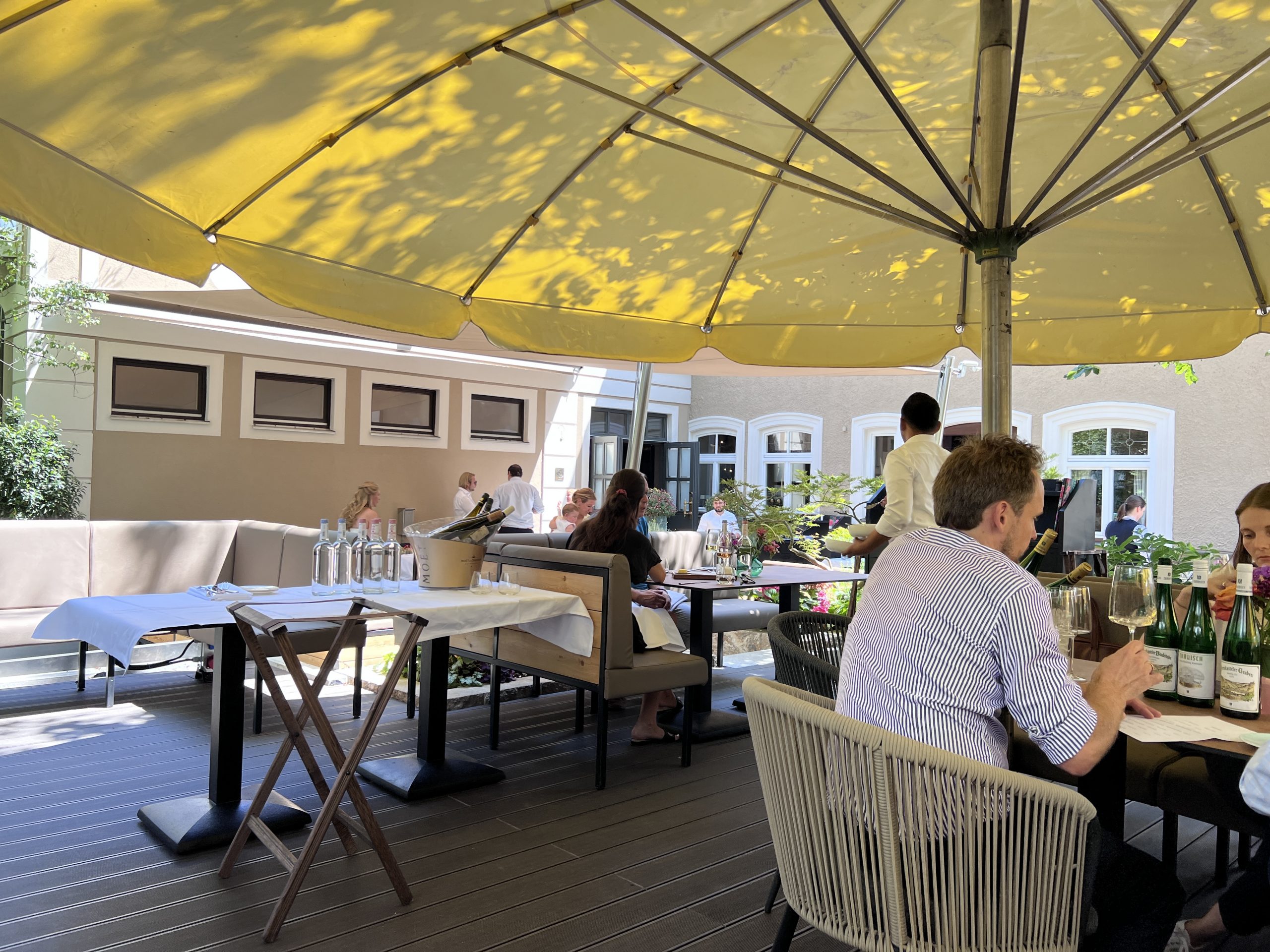 Mit Kurt Goldstein treffe ich mich daher im neu gestalteten Bogenhauser Hof zum Mittagessen und der Übergabe der Pretiosen. Unser Lieblingsrestaurant in der Nachbarschaft wurde sehr aufwändig und teuer renoviert und ich teste erstmals die Küche