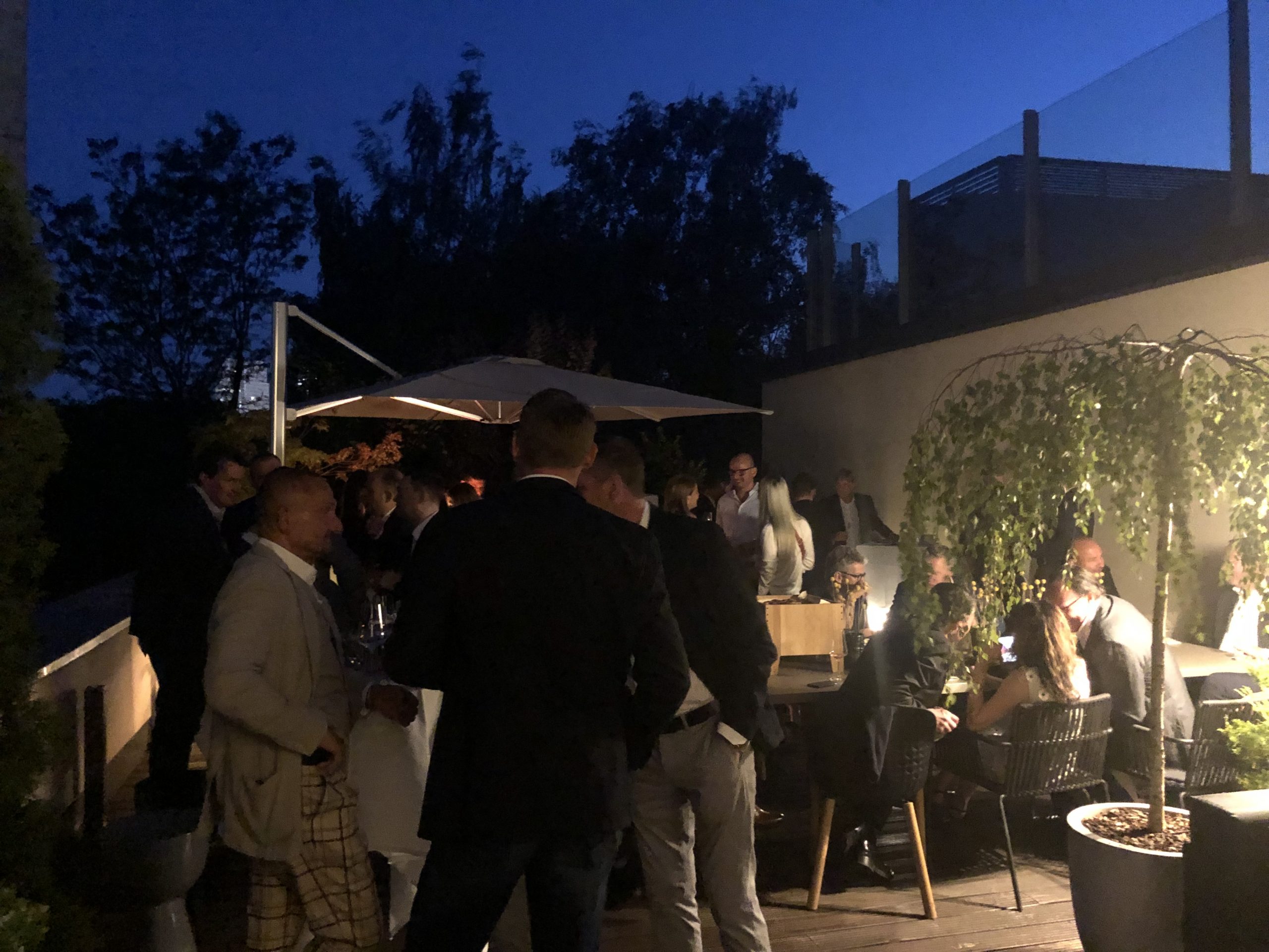 Simone Hartmann organisiert wie immer gekonnt ihre Gäste ... und wir geniessen den warmen Sommerabend auf der Terrasse des Hotels Stue