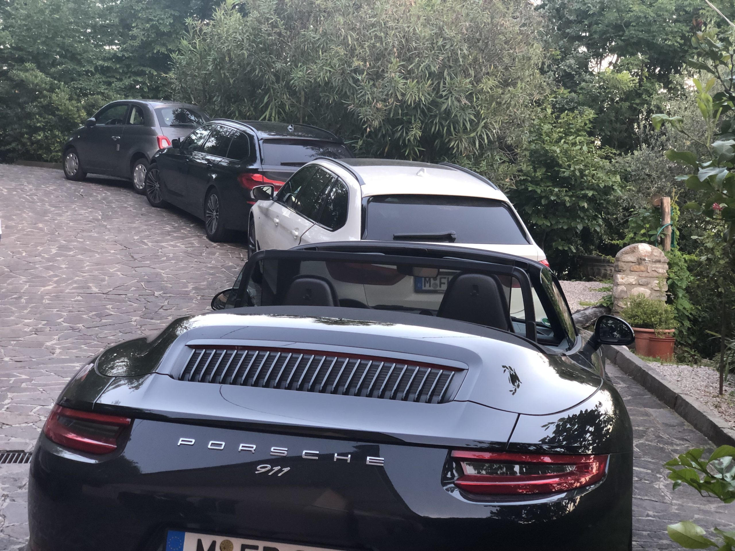 Der bereits perfekt geparkte Fuhrpark steht schon für die spätere Heimfahrt in der entsprechenden Richtung