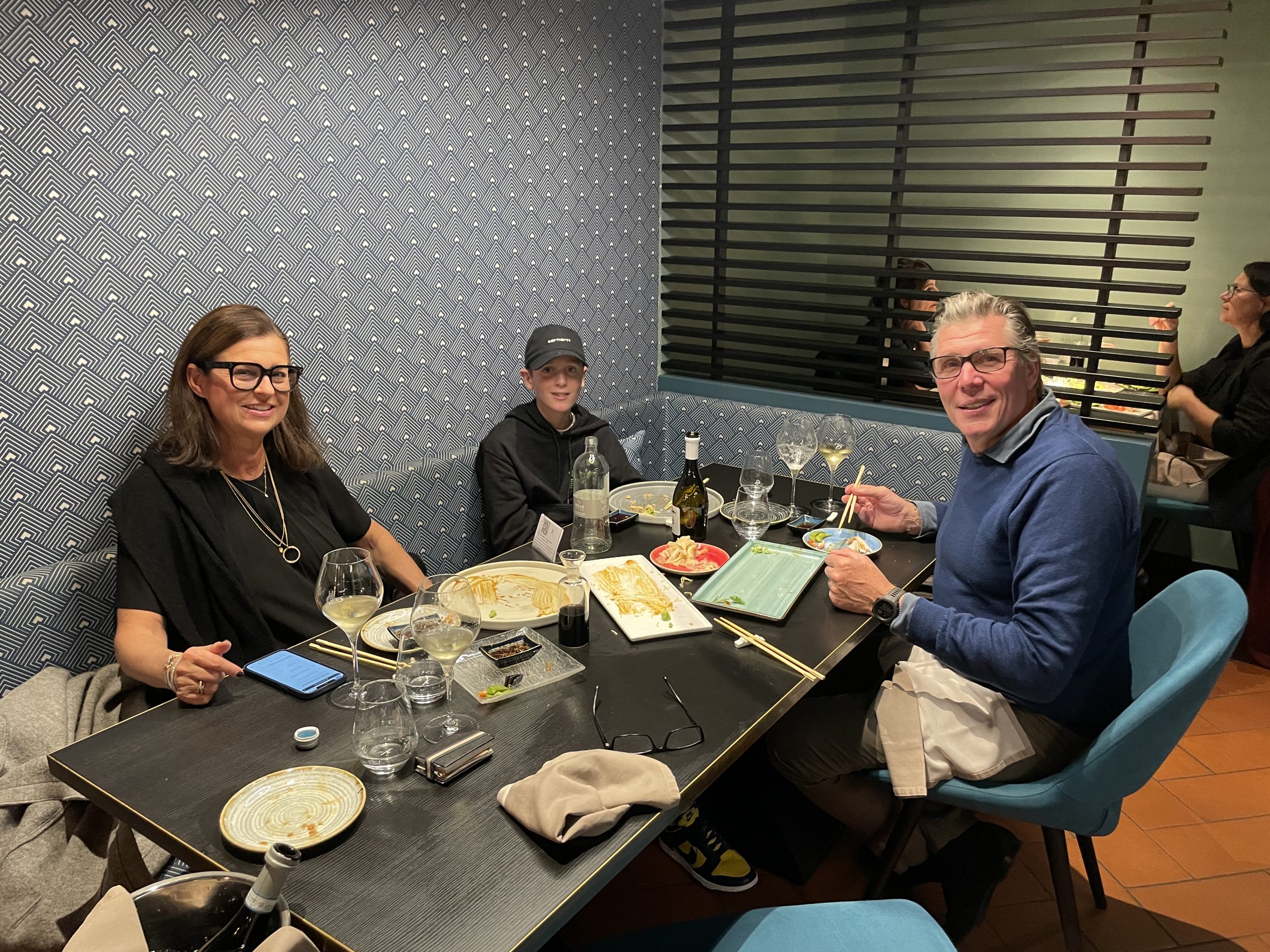 Am Abend davor waren Annette und ich zu einem Abendessen mit Mathias und Hugo Gehrckens in unserem Lieblings-Asiaten-Lokal Brunati in Salò verabredet; hier trafen wir auch zufällig Giorgio und Katie - die Besitzer des Rustico Il Chiostrino in Morgnaga, in dem in der Regel die Familie Hellmann ihre Gardasee Urlaube verbringen