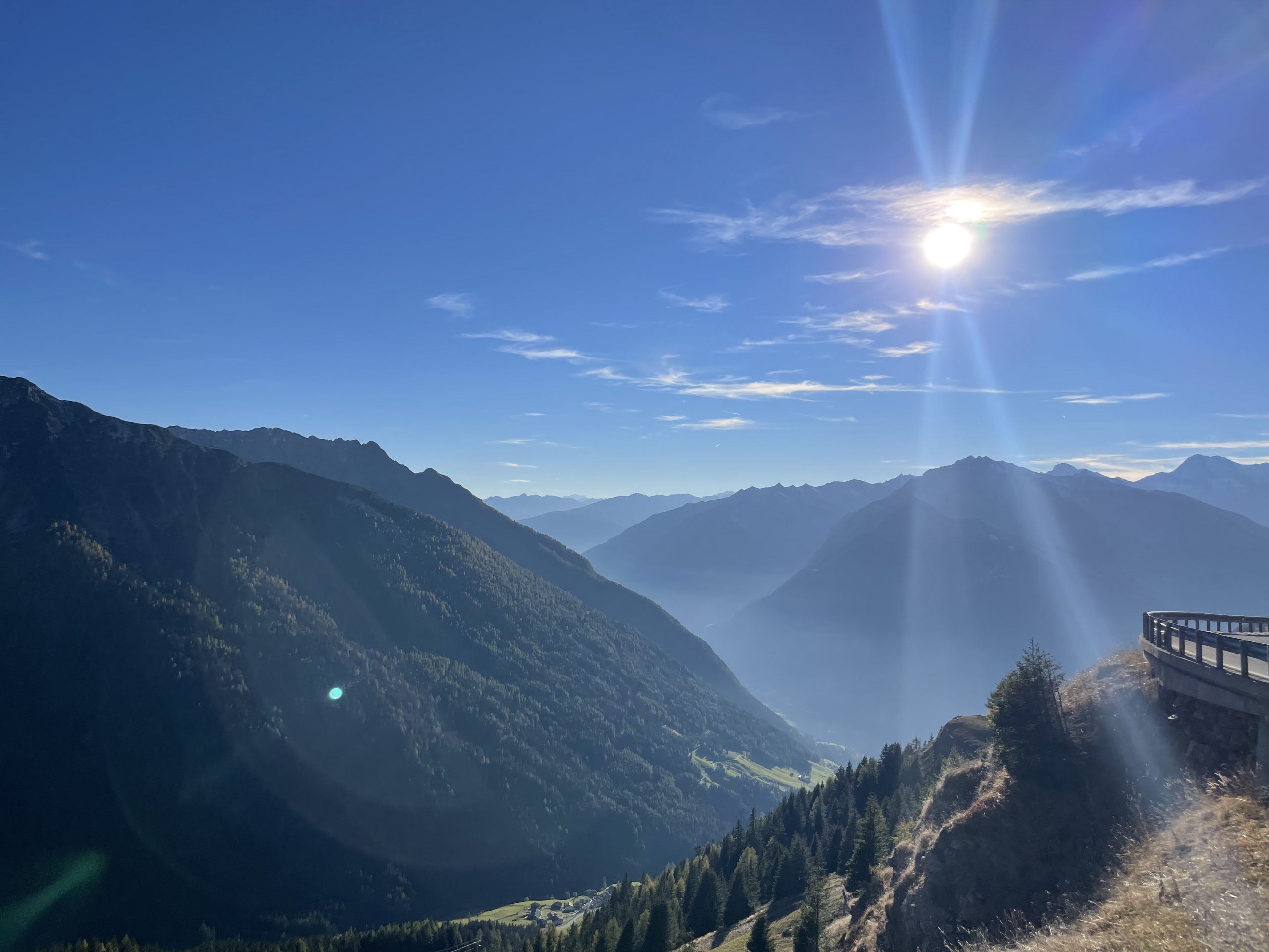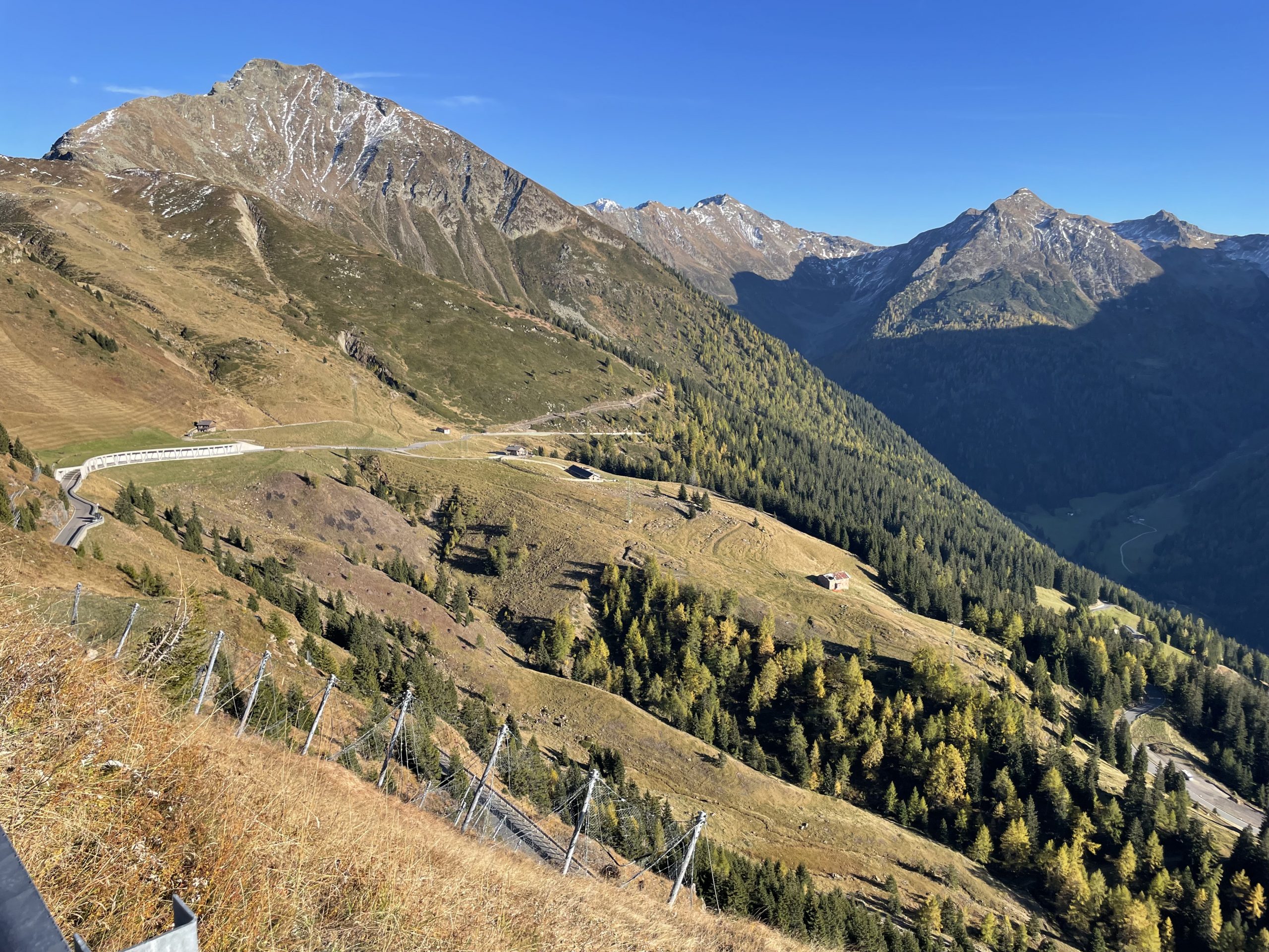 Unten im Tal liegt St. Leonhart, der letzte Ort vor dem kurvenreichen Anstieg zum Jaufenpass