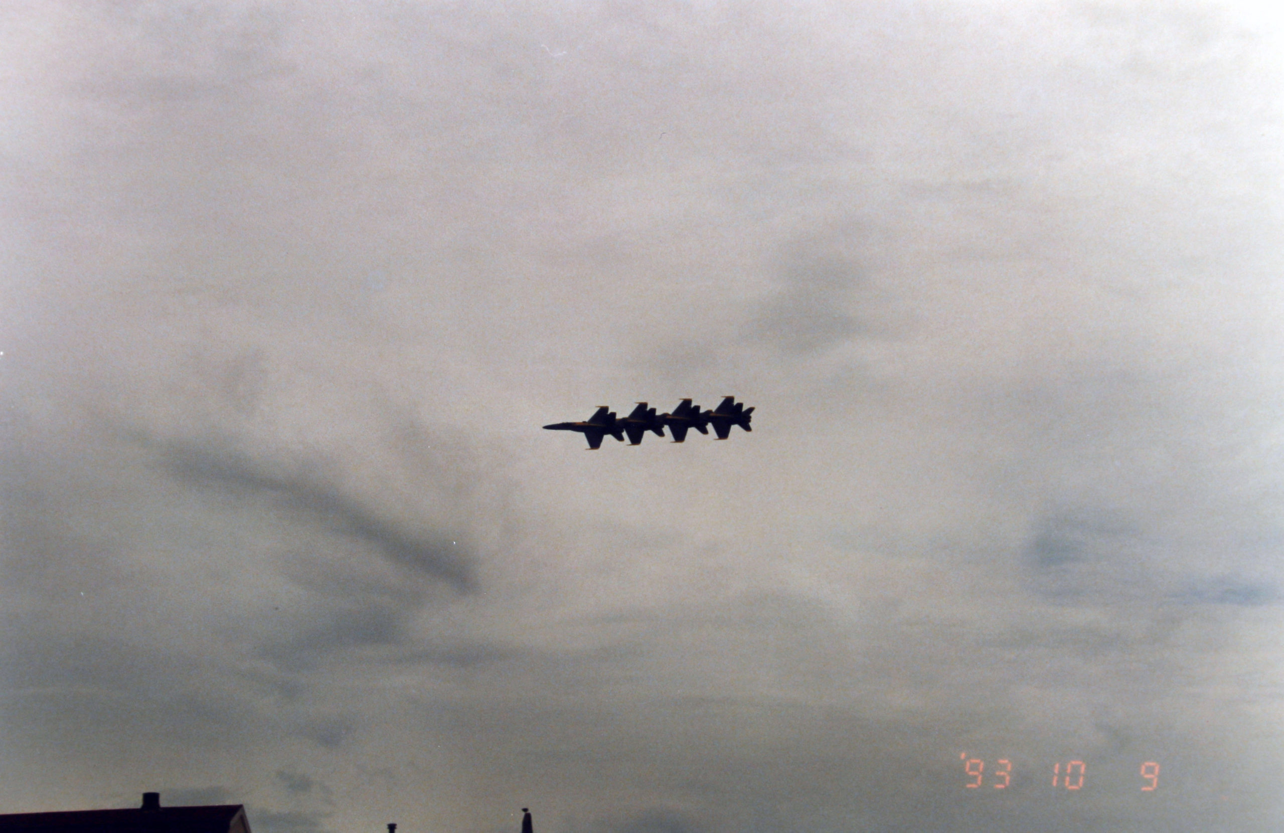 Formationsflug und Beinahekollisionen boten die Blue Angels, die Kunstflugstaffel der US Navy, mit ihren blau-gelb lackierten Kampfflugzeugen vom Typ F-18 Hornet.