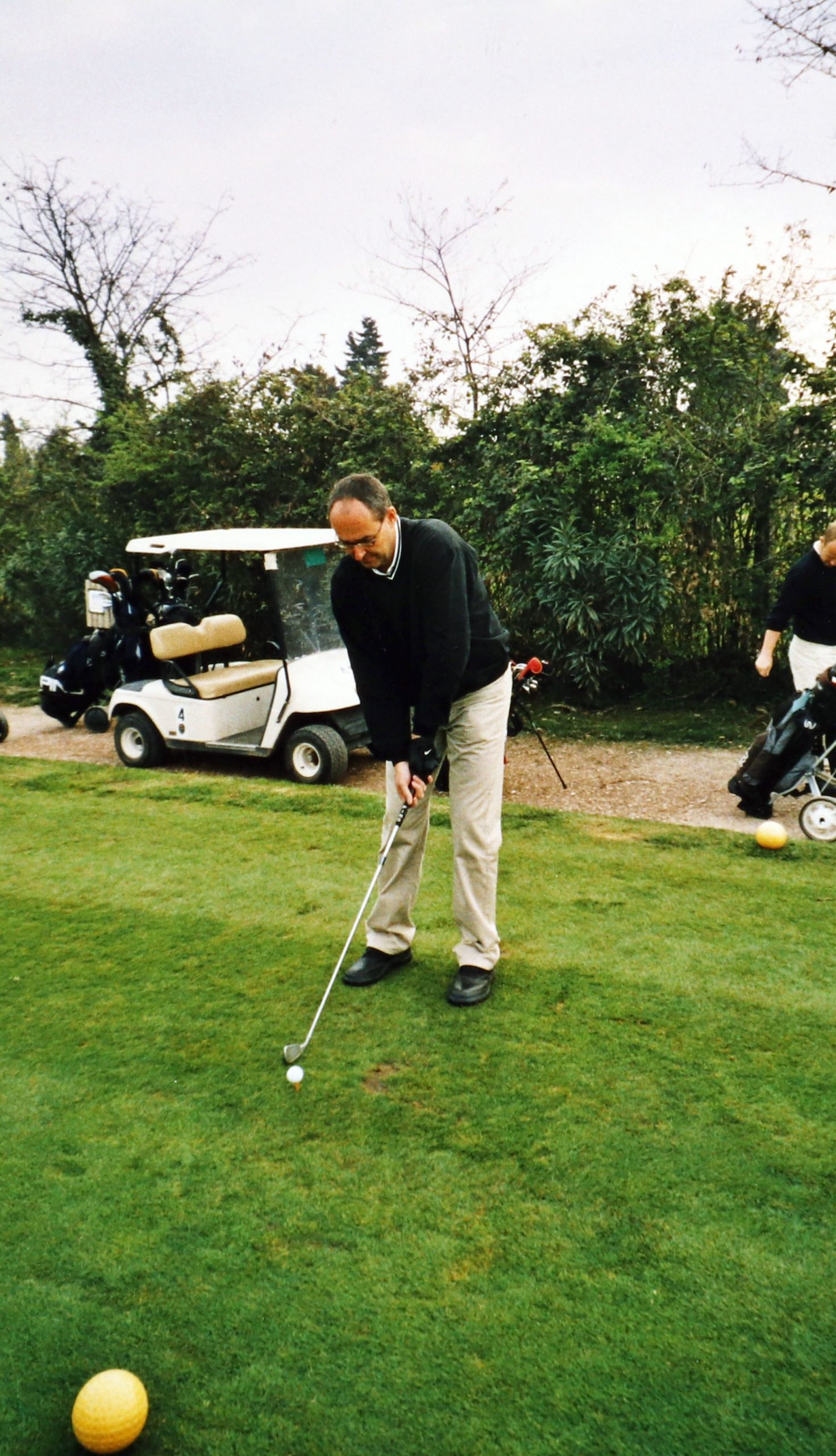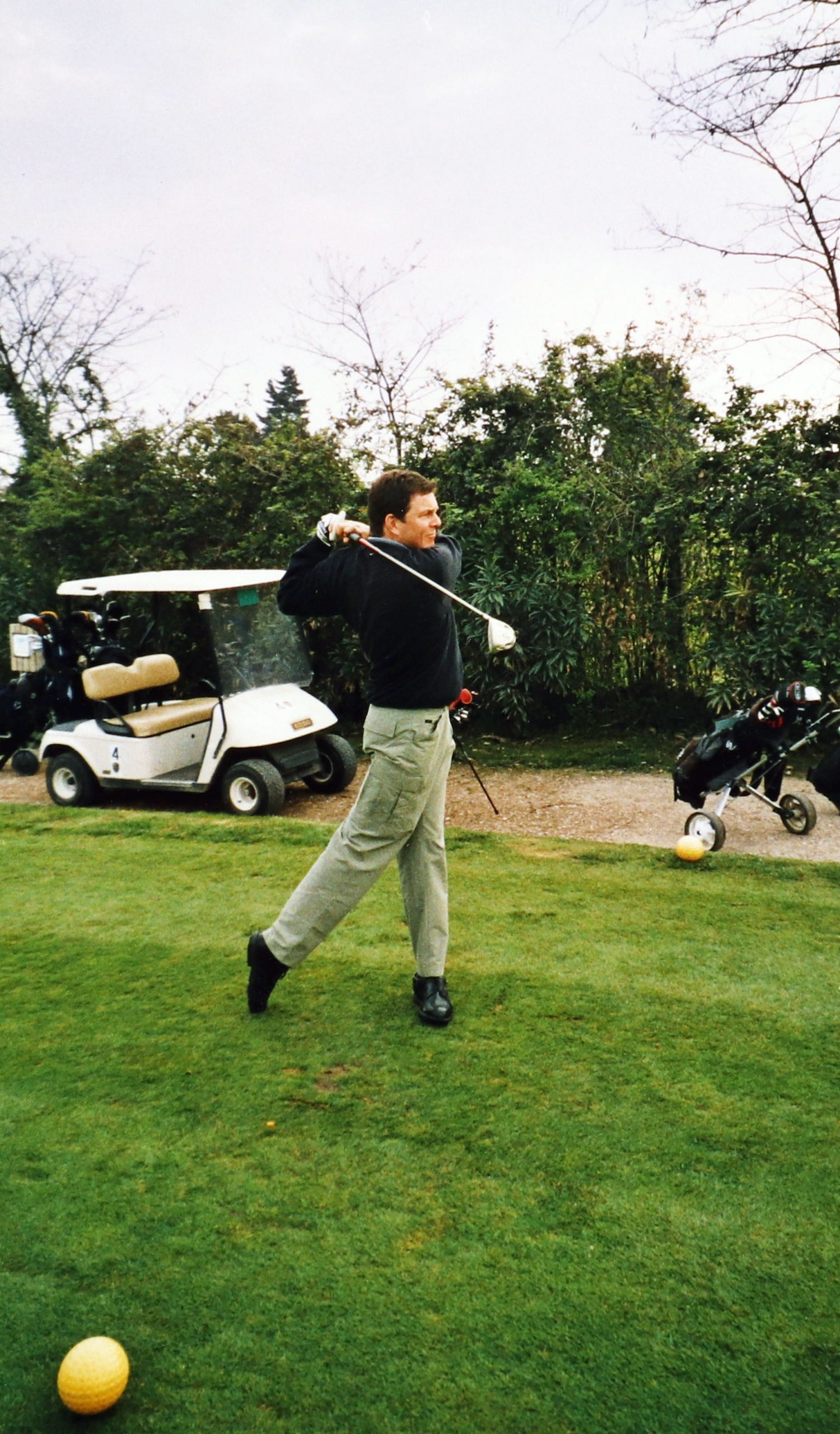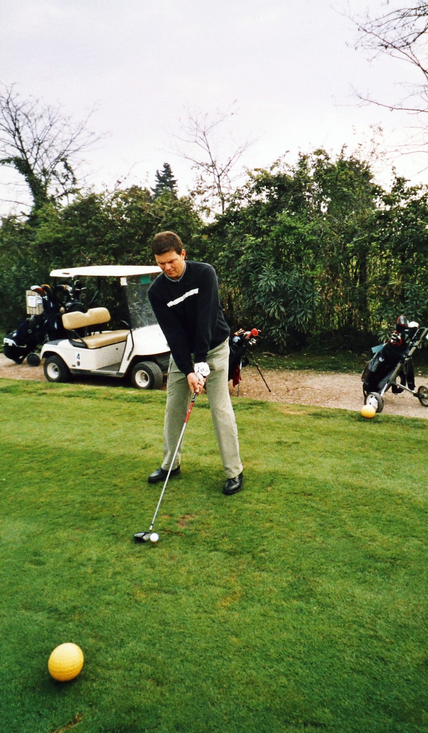 Selbst die muskulöse Ansprache des Balls strahlt bei Markus "Gefahr im Verzug" aus .... ich bin schon froh, daß wir beide dauerhaft "Rechts der Isar" wohnen werden und damit für immer ins gleiche Ryder Cup Golf Team gehören