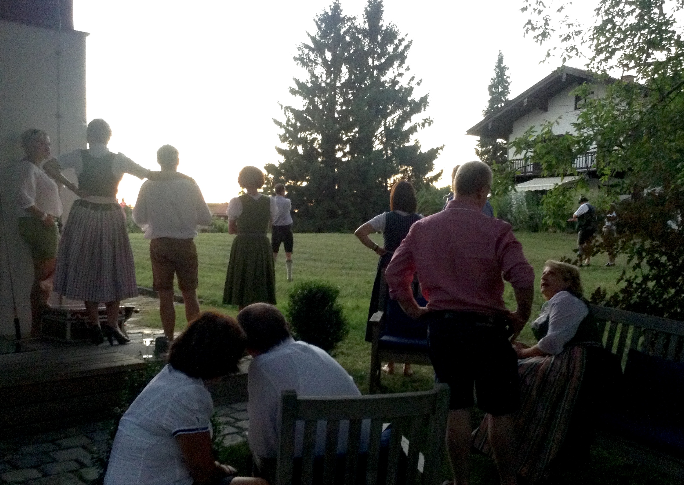 An diesem heißen August Abend kann frau schon mal die Dirndlbluse weglassen ... in diesem Fall ist die rechte Blusenweglasserin unsere Freundin Birgit, die Schwester des Geburtstagskindes Gaby