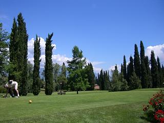 Die Golfregion Gardasee ist für jeden engagierten Spieler ein Erlebnis der besonderen Art. Die schönen, individuell gestalteten Golfplätze fügen sich in die verschiedenartigen Landschaftsformen ein, die man in der herrlichen Region vorfindet. Die Plätze am Gardasee sind ganzjährig bespielbar und für Anfänger wie für passionierte Golfspieler eine Herausforderung. Dabei ist besonders eine Runde auf dem Platz Gardagolf ein echtes Erlebnis! Der Golf Club liegt in traumhafter Lage zwischen der Rocca di Manerba, dem Castello di Soiano und den Hügeln der Valtenesi. Das Landschaftsbild ist geprägt durch Zypressen, Olivenbäume, Steineichen und Pinien, und lässt jedes Golferherz höher schlagen. Es gibt kaum einen Golfplatz, der schöner angelegt ist. Vor allem der rote Kurs zieht sich durch einen wunderschönen Park voller alter Bäume, wunderschön blühender Blumen und viel Wasser. Der 27-Loch Golfplatz ist eine echte Herausforderung für jeden Golfspieler, gleich welcher Spielklasse. Der Golfplatz ist wunderschön und mit viel Liebe zum Detail angelegt: So blühen an jedem Abschlag entsprechend in der Farbe des Kurses (Weiß, Gelb und Rot) herrliche Rosen. Ob diese schon geblüht und geduftet haben als Herbert, Olaf und ich auf einer spannende Runde Mitte April gegeneinander angetreten sind ist nicht belastbar überliefert, doch für die Anlage können wir uns alle drei immer wieder begeistern.