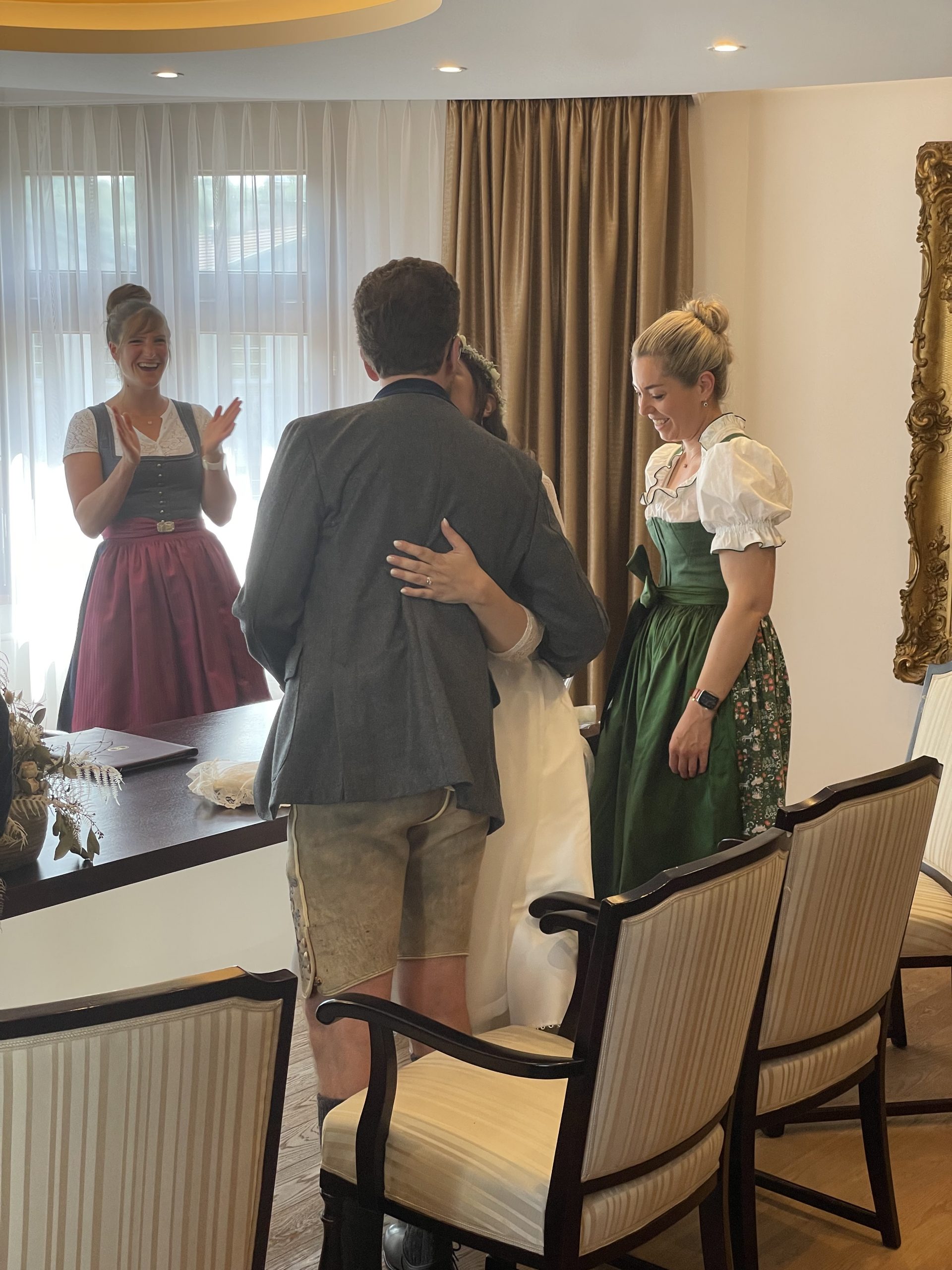 Die nette Standesbeamtin hat es erlaubt ... und so küssen sie sich auch