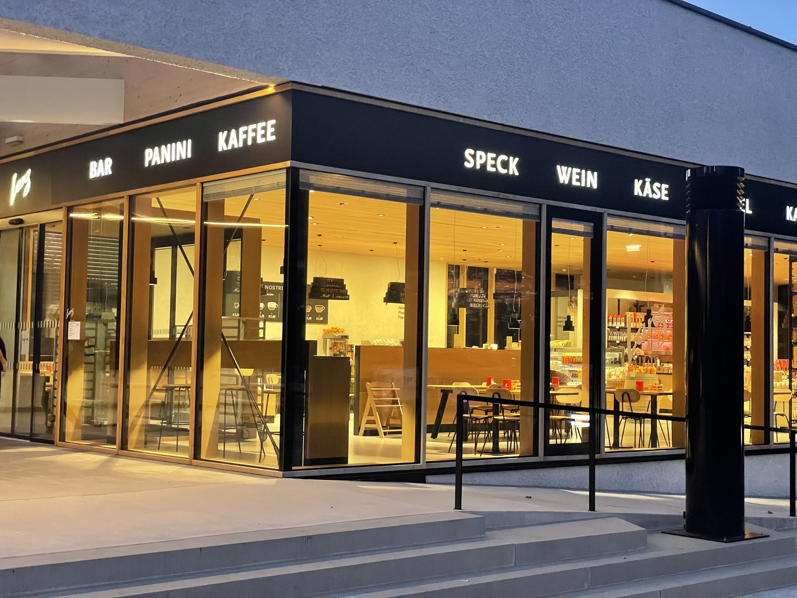 Bei unserer Rückfahrt von München nach Gardone haben wir in der Nacht noch etwas Neues entdeckt, denn zum 1. Oktober wurde eine Einkehrstation der Firma Lanz an der Europabrücke - direkt neben McDonalds - eröffnet. Die Lokale der Marke Lanz sind unserer Herren Skigruppe seit einigen Jahren ans Herz gewachsen, da wir bei unseren Ski-Fahrten nach Alta Badia immer gerne in der Lanz-Location im Pustertal Stopp machen