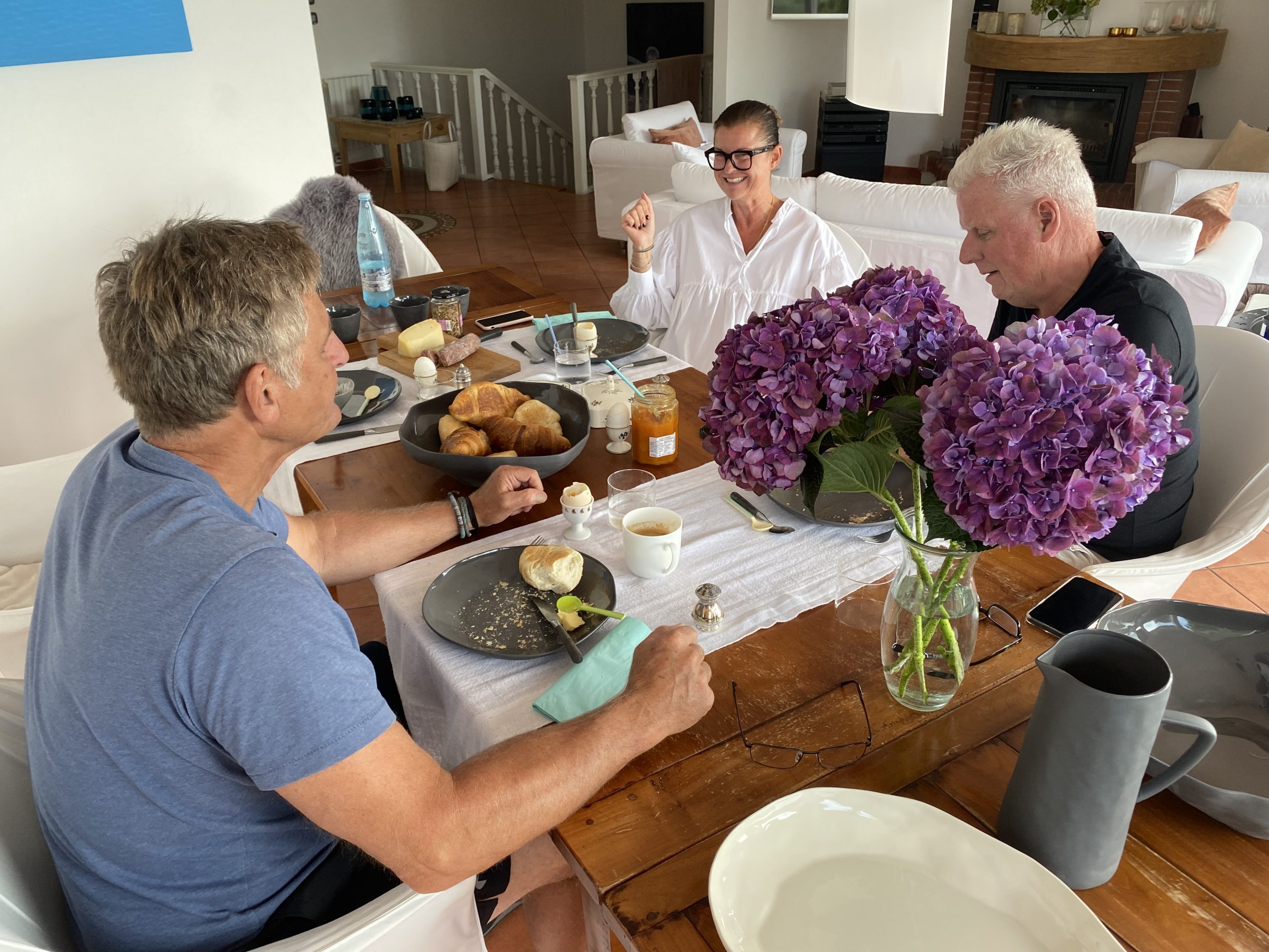 Beim Frühstück wird der Tagesplan geschmiedet ... Ette muss arbeiten und bleibt zu Hause ... und Jasmin, Michi und ich schwingen uns auf die motorisierten Zweiräder