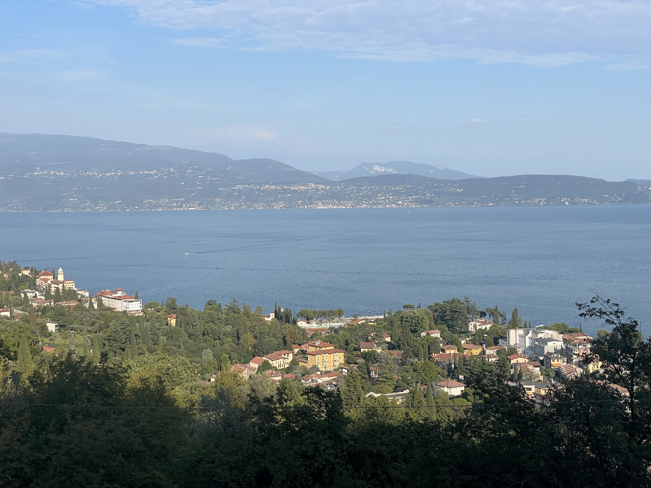 Blick von der Bergstrasse über Barbarano zu dem am Westufer gelegenen Torri di Benaco