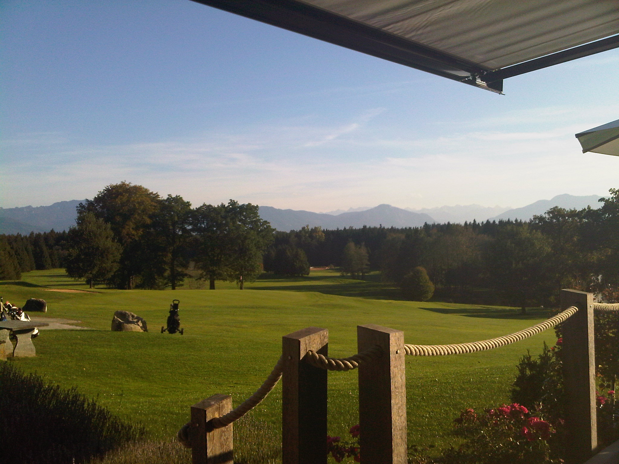 Der herrliche Blick von der Clubterrasse ins Karwendelgebirge .... links kann man die Benediktenwand erkennen
