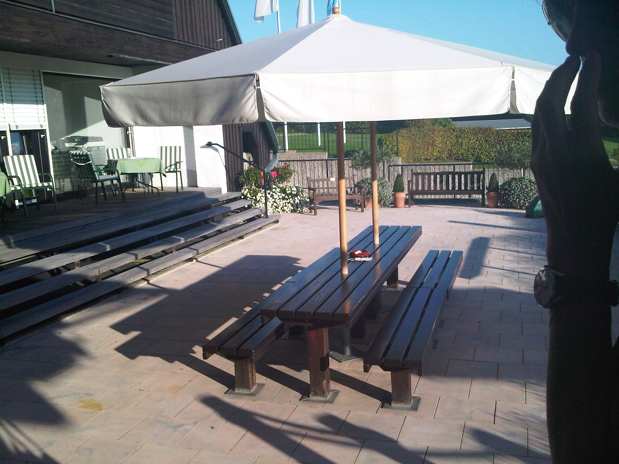 Nach Rückkehr von der Runde ist dieser große Tisch jeweils Anlaufstelle für einen ersten Drink sowie das Ausfüllen der Scorekarten