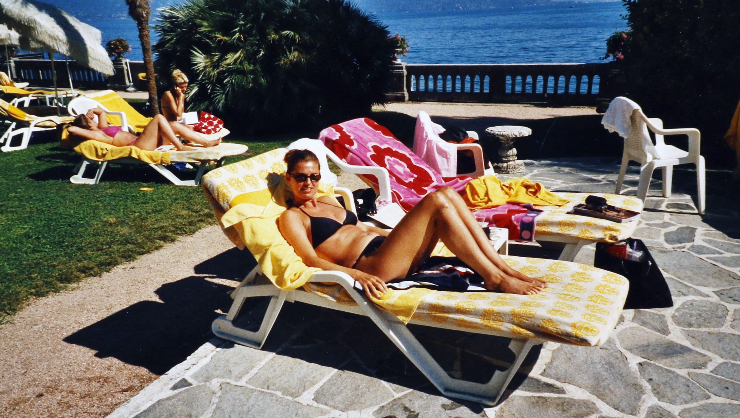 Annettte und ihre befreundete Strenesse und Escada Kollegin Stteffi Schneider auf der Terrasse des Ristorante Casino in Gardone
