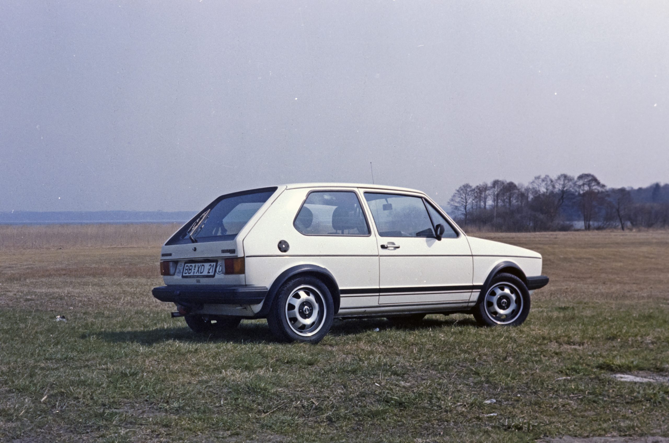 Golf GTI mit Pirelli Breitreifen und Grünkeil in der leicht getönten Windschutzscheibe. Die Umstände der Bestellung der Extras für diese Fahrzeug sind fast einen eigenen Beitrag wert.