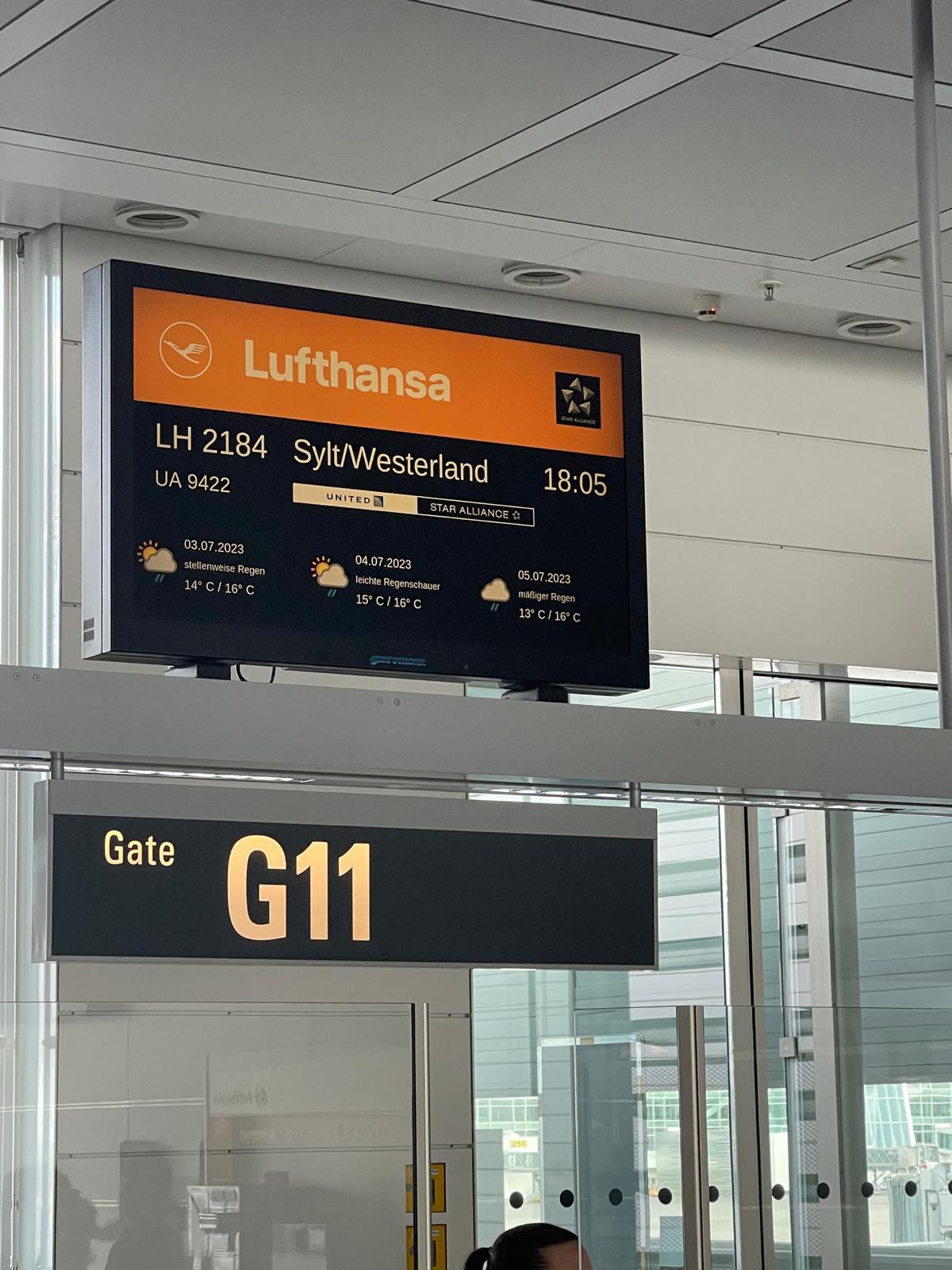 Ette beim Non-Stop Flug der Lufthansa von München nach Sylt. Vorher hat sie in der Möhlstrasse noch ein neues elektronisches Schloss an unserem Anhänger angebracht. Auch ich bin nicht untätig, sondern wurde in der Via Panoramica von Hunde- zusätzlich auch zum Katzenfütterer befördert