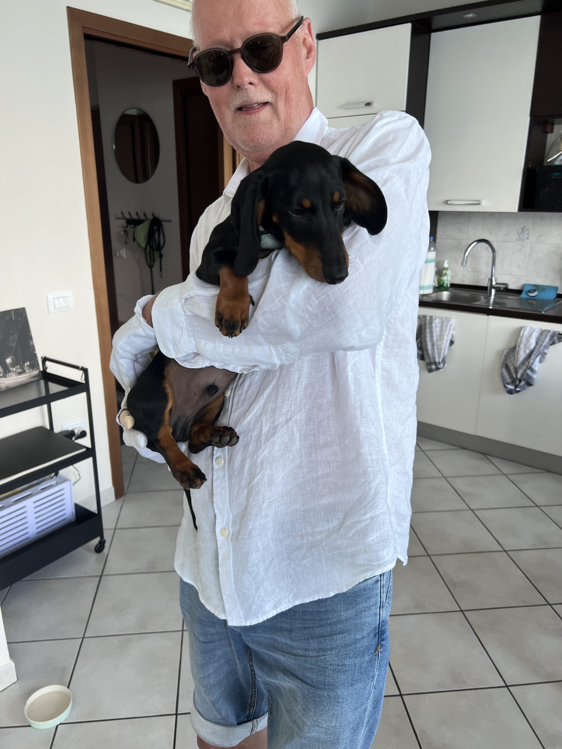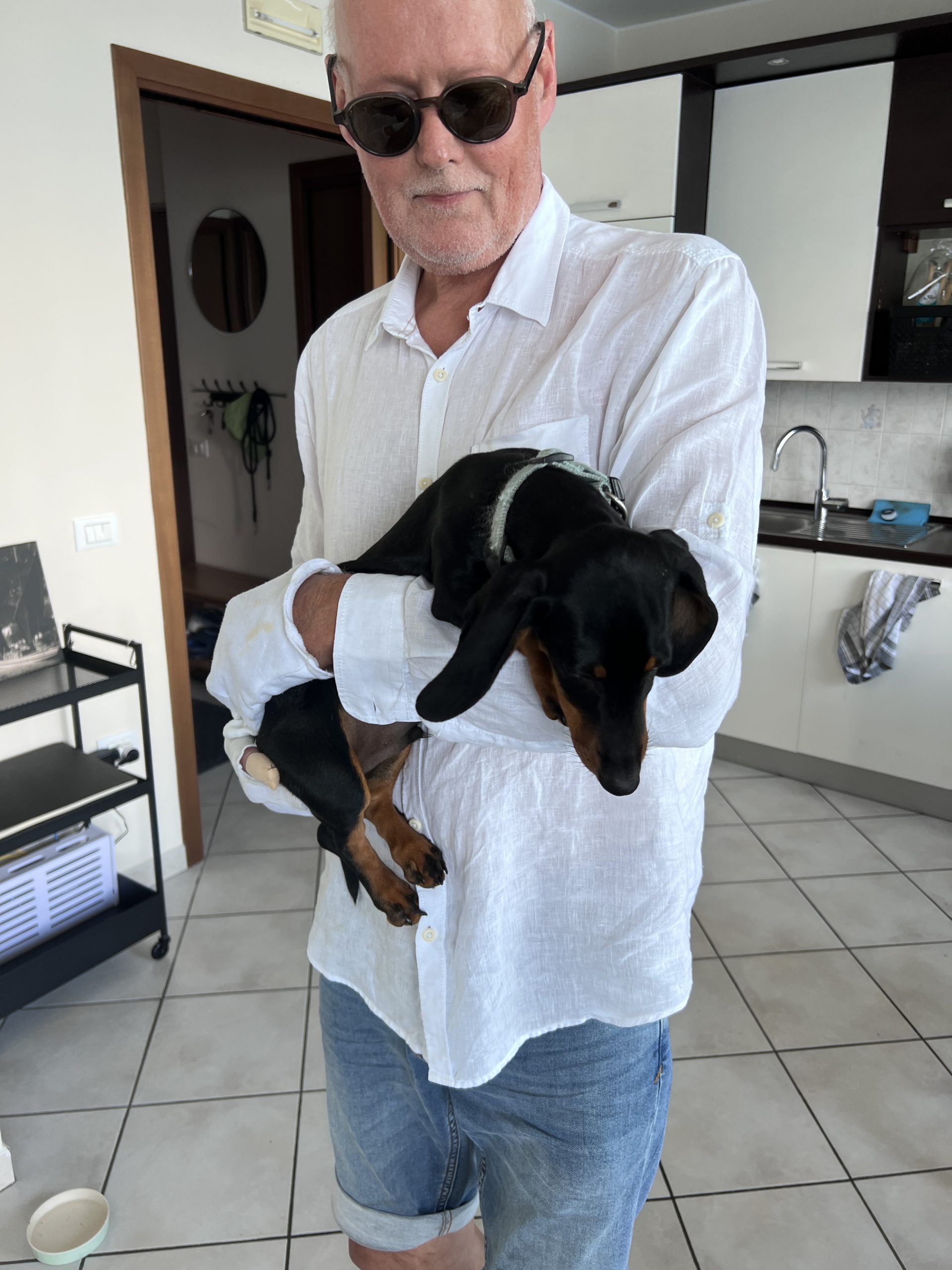 Thomas ist mit Maxl - dem Dachshund Dackel seiner Tochter Donata - unterwegs