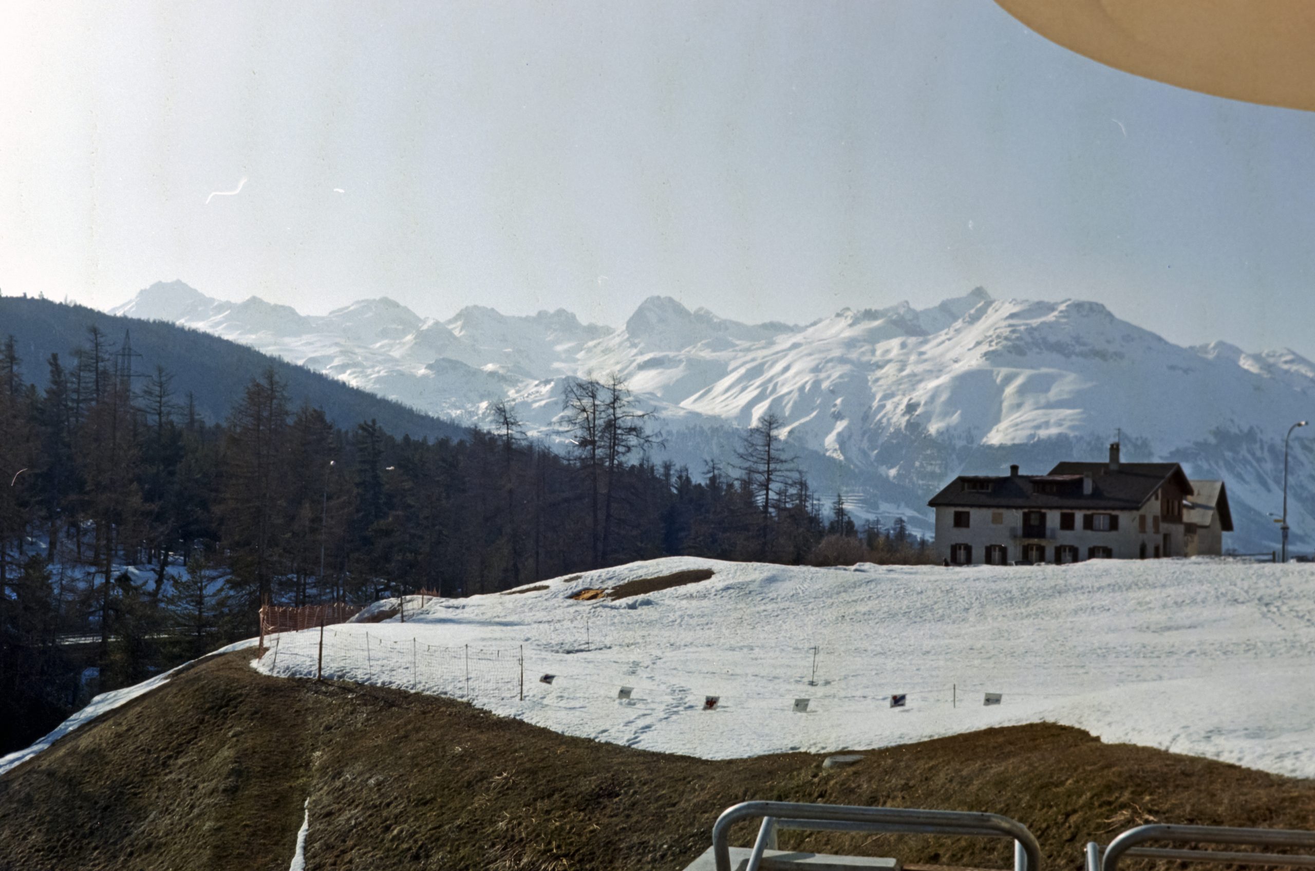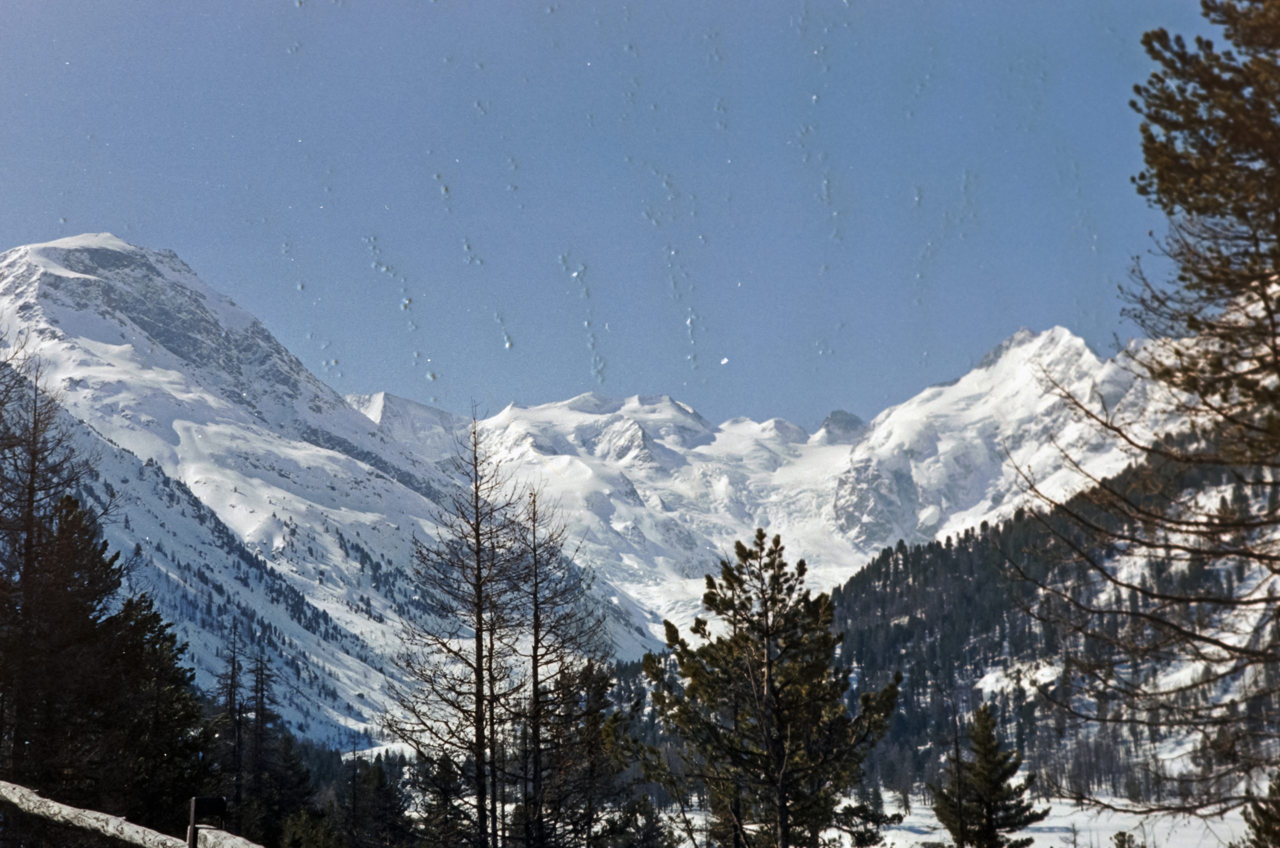 Grandiose Berge über charmantem Ort – Pontresina in Graubünden – Skiurlaub im Engadin – 1985